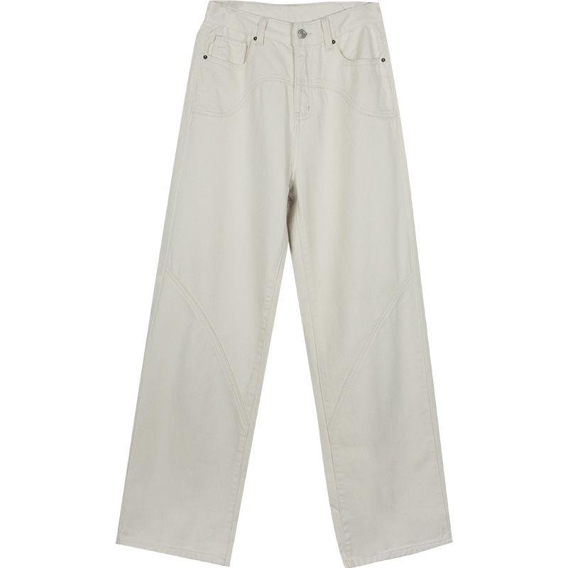 Широкие джинсы с высокой талией для женщин, осенние корейские новые модные свободные повседневные брюки, бежевые длинные джинсы женские