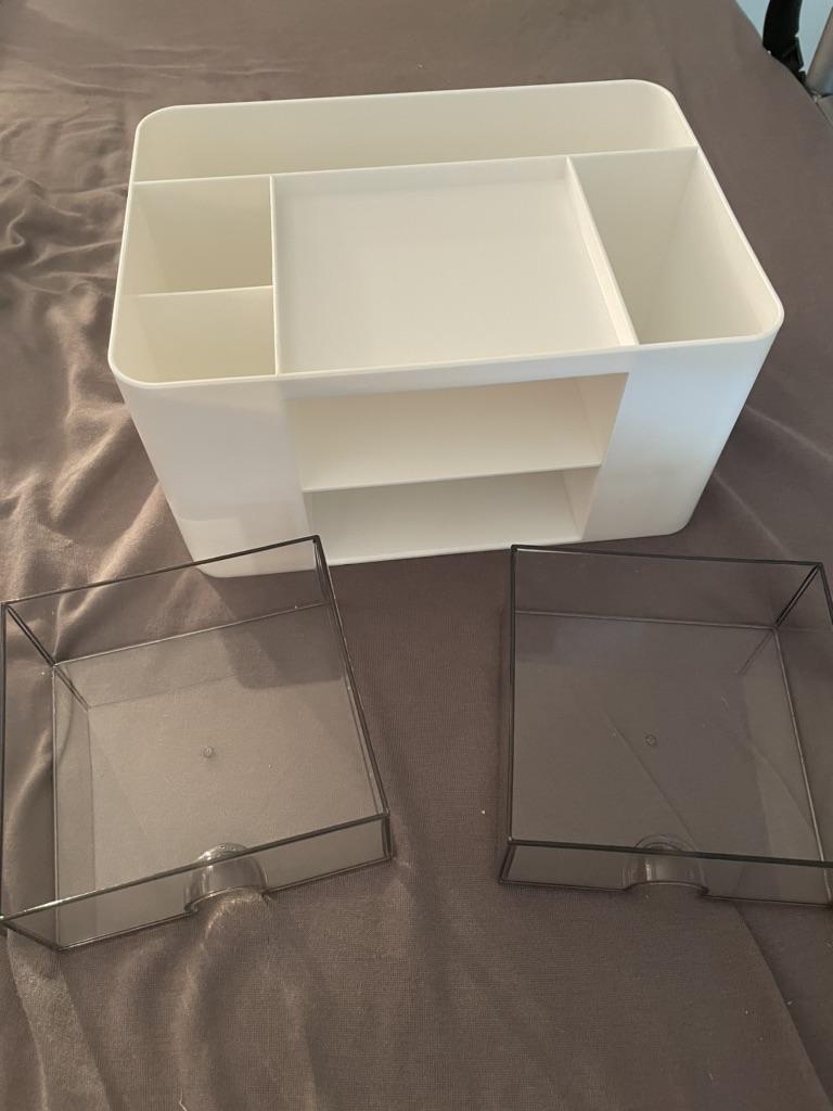 Органайзер классный, но приехал немного поцарапанный и на полочках снизу были какая то леска которую было сложно отрезать, а так то всё отлично, спасибо!💋