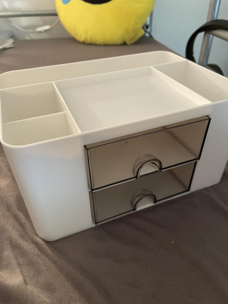 Очень хороший оргонайзер.Совсем не маленький,как пишут в отзывах.Очень вместительный,ящики выдвигаются с легкостью.Рекомендую)