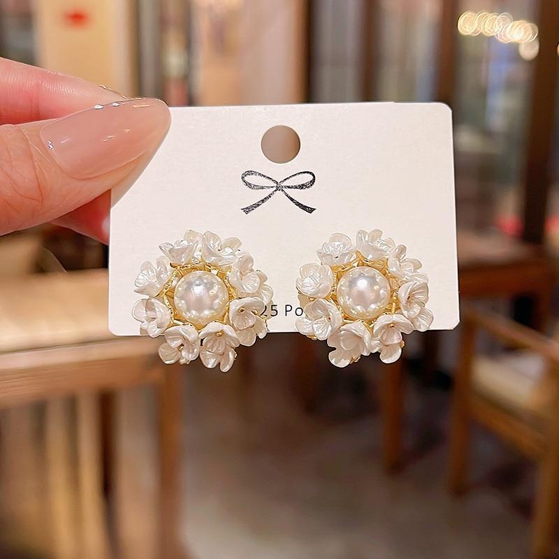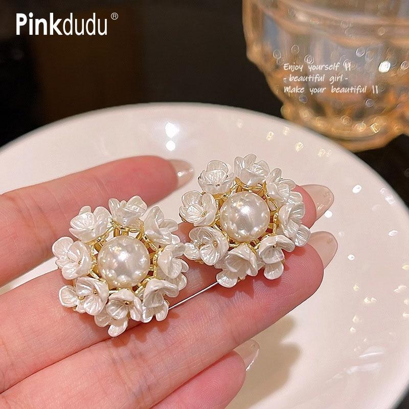Pinkdudu 2023 модные белые акриловые цветочные серьги-гвоздики с имитацией жемчуга, романтические роскошные серьги-гвоздики с растениями для женщин, PD1426