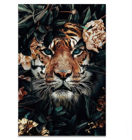 Скандинавский цветок, животное, тигр, лев, зебра, постер и принт, настенная роспись для гостиной, холст, современная классическая декоративная живопись