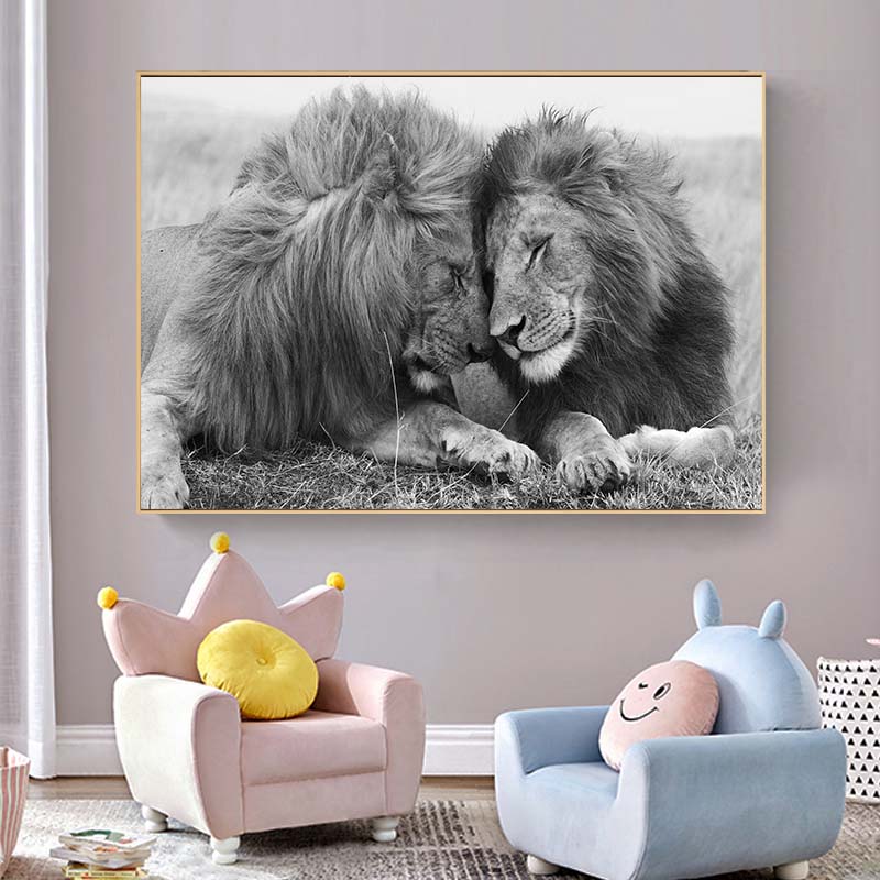 Львы, прижавшиеся друг к другу, настенные художественные картины на холсте, черно-белые художественные постеры с животными, картины современного искусства для домашнего декора, фон — купить товар онлайн с бесплатной доставкой по всему миру!
