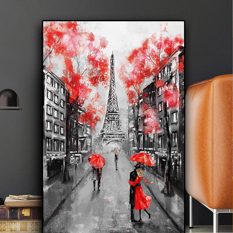 Романтическая городская пара Париж Эйфелева башня картина маслом на холсте Art Cuadro постеры и принты скандинавская настенная картина для гостиной