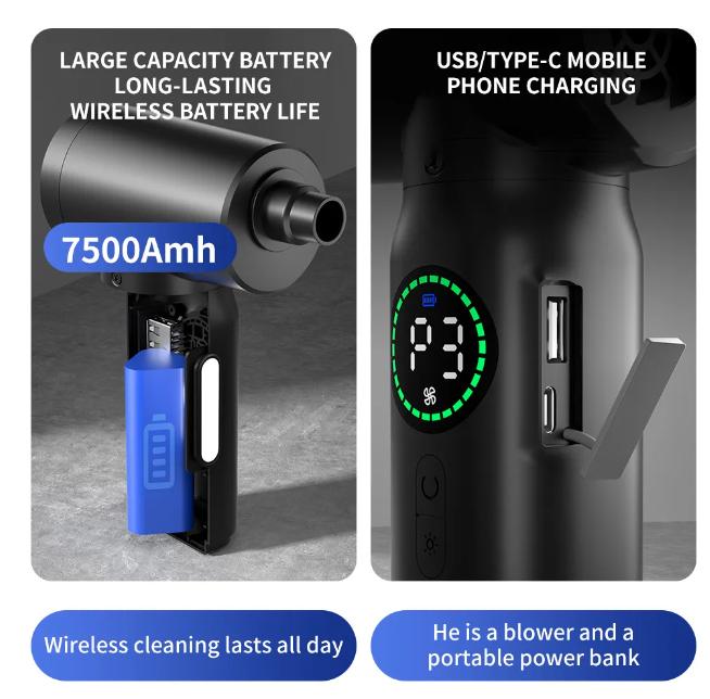 【Перезаряжаемый компьютерный Duster】: .Максимальная мощность обновления 100 Вт, двигатель 50000 об/мин обеспечивает сверхсильный воздушный поток для глубокой очистки от микроскопической пыли. .Подходит для очистки различных устройств, начиная от компьютера, объектива камеры, PS4 / 5, ноутбука, автомобильного воздуха, кондиционеров, дивана, печатных плат до электронных инструментов, очистки медицинских устройств; .Заменяет сжатый распыляемый газ.