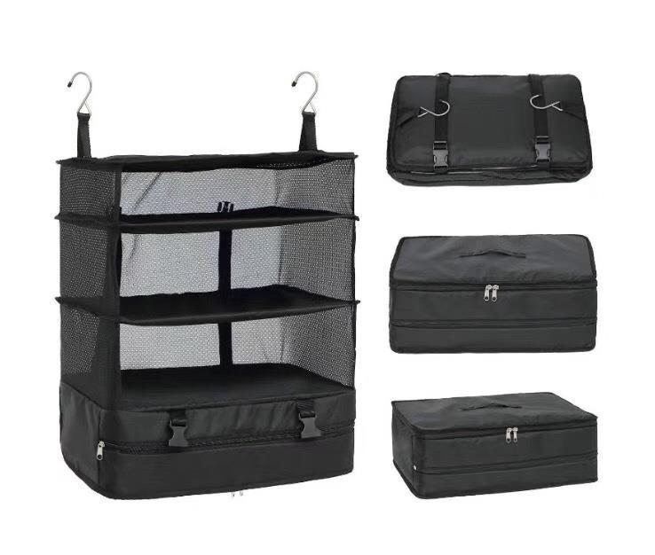 Широкий диапазон применения: Легко складываемые и раскладываемые, эти портативные подвесные дорожные полки доступны в 3 формах: подвесная форма, форма чемодана и компактная форма хранения. Он может не только поместиться в чемодан, но также может быть эффективно использован дома / в общежитиях / гостинице / больнице, чтобы улучшить организацию вашего шкафа