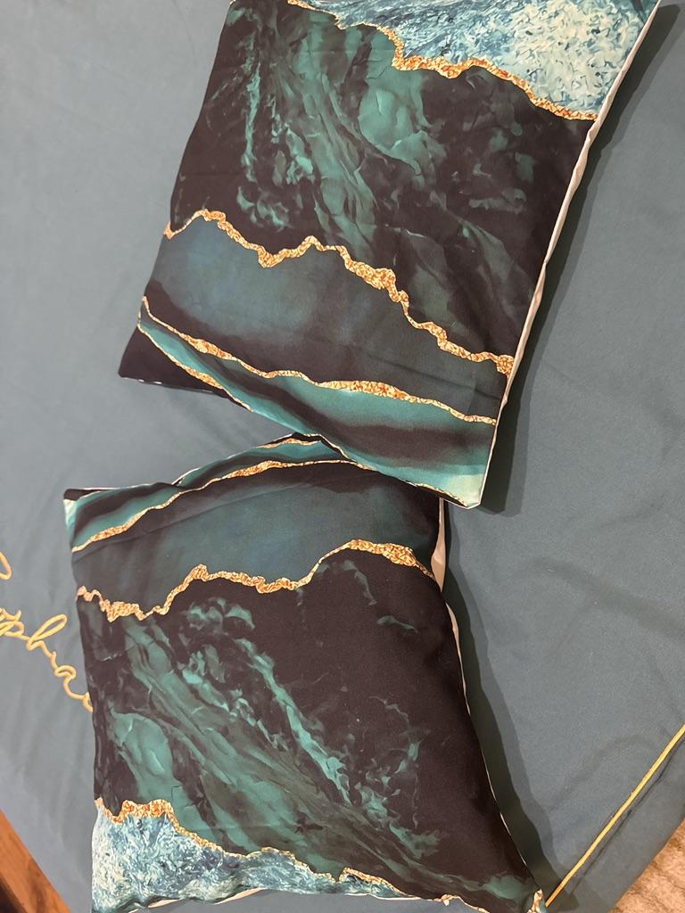 Наволочка пришла быстро!Размер 40 на 40.С одного бока пайетки немного заедают,но общего впечатления это не портит.Заказом довольна