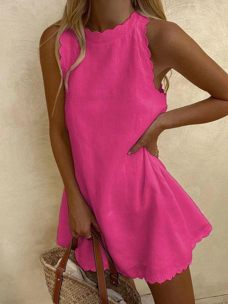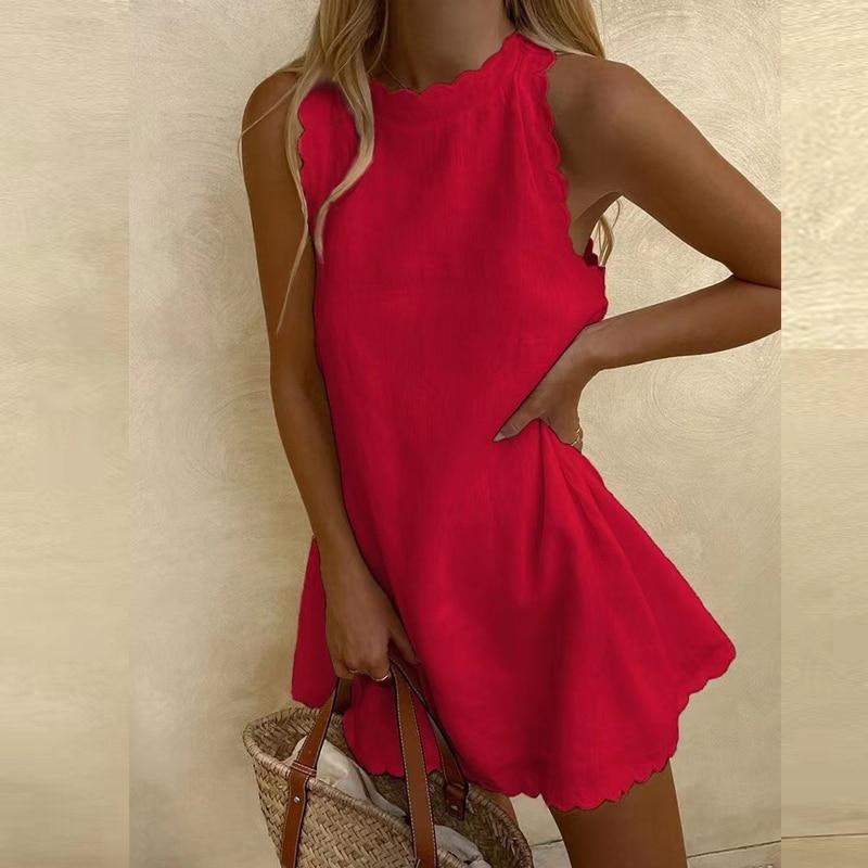 Модное однотонное мини-сексуальное платье без рукавов, женское летнее хлопково-льняное платье с круглым вырезом и рюшами, 2023, повседневное пляжное белое платье, халат 25672