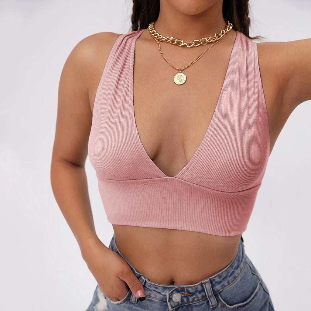 Женский летний повседневный спортивный жилет для бега, однотонный жилет с V-образным вырезом и укороченным топом
