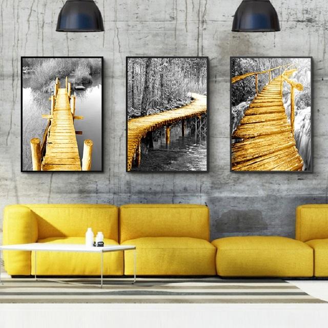 Золотой Ретро природный пейзаж холст плакат скандинавская лодка дерево озеро настенное искусство современное украшение дома картина для внутренних картин