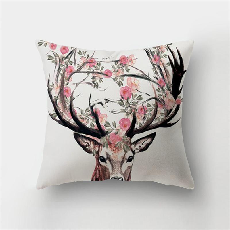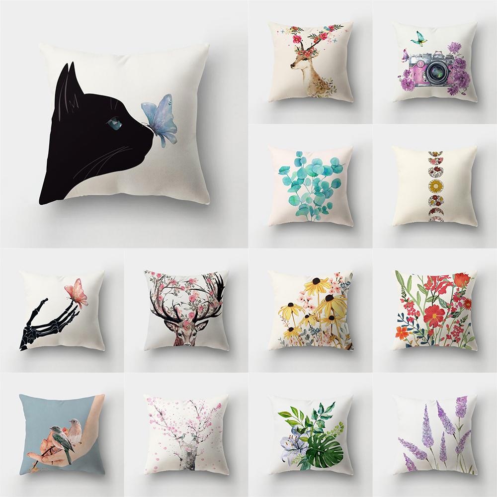 Чехол для подушки с изображением животных и натуральными листьями, цветком и пейзажем, наволочка для дома, гостиной, дивана, украшения спальни, наволочка