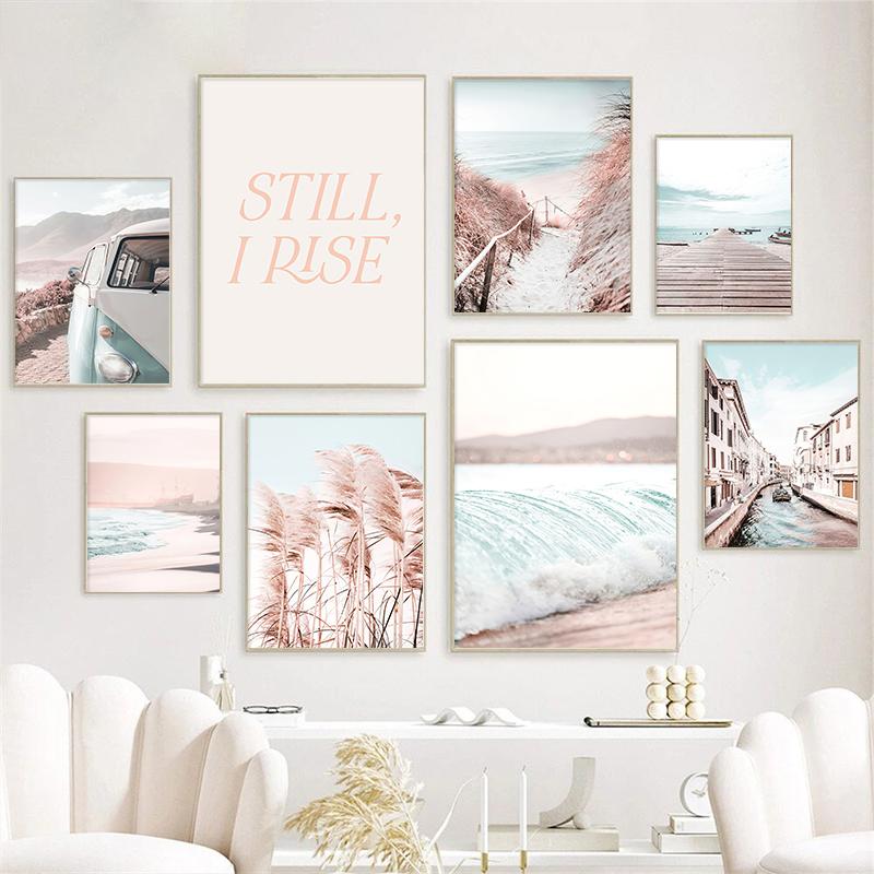 Волнистый мост, морская звезда, ракушка, тростниковый плакат с принтом, пляж, море, холст, картина, настенная живопись для комнаты, настенная живопись, настенная картина для декора гостиной