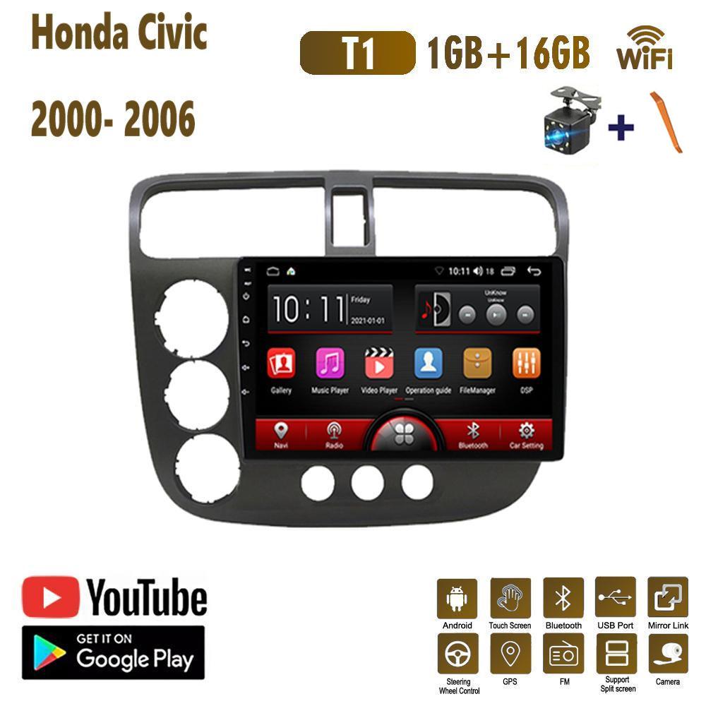9-дюймовый автомобильный радиоприемник на базе Android для Honda Civic 2000-2006, автомобильный мультимедийный видеоплеер, стерео радио, GPS-навигация, WIFI, 1 + 16 ГБ