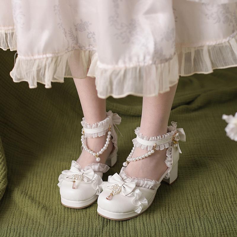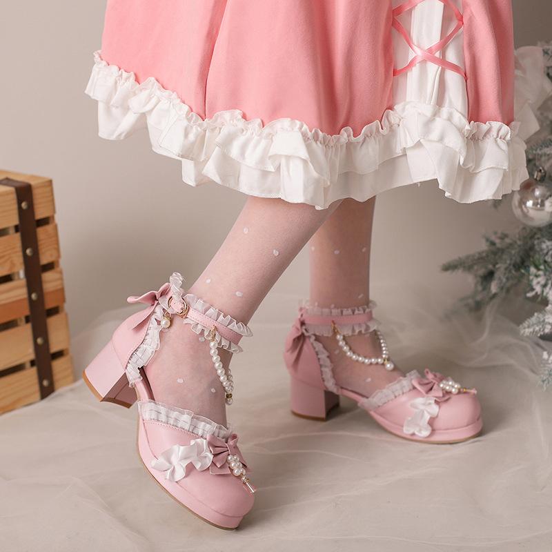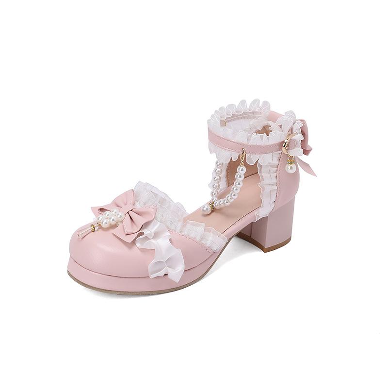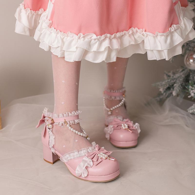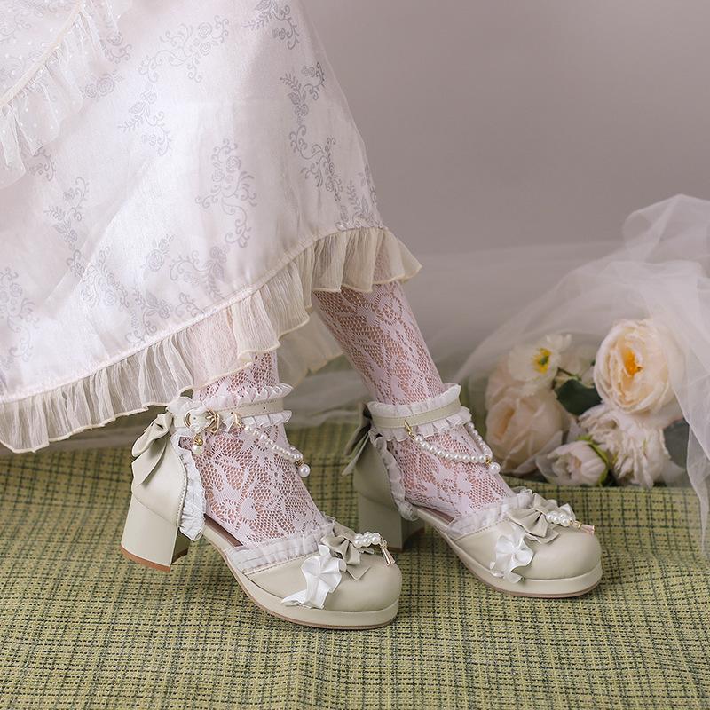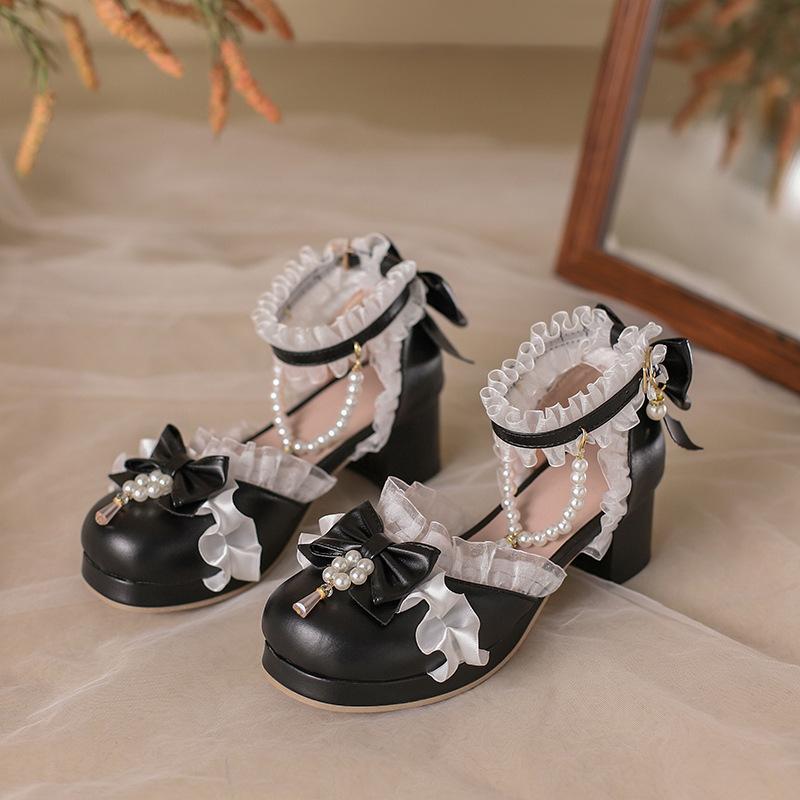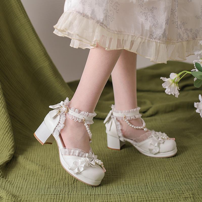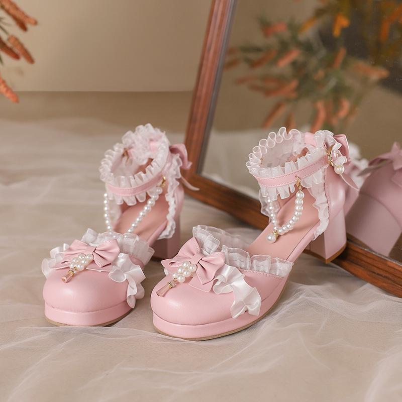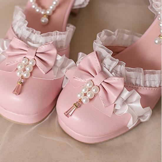 Весенне-летние туфли в стиле Лолита в сказочном стиле с бантом из бисера, туфли ярких цветов Baotou, полые сандалии, туфли на толстом среднем каблуке, модные и повседневные