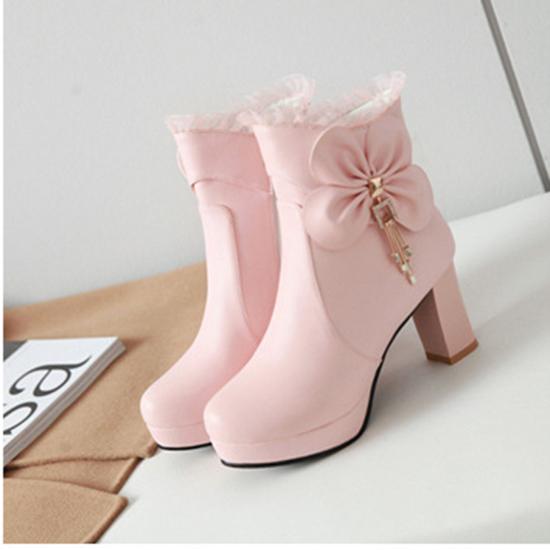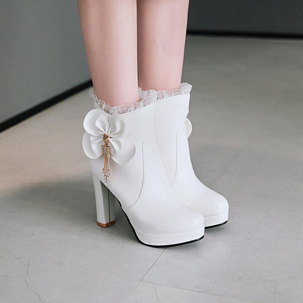 Весенне-осенние милые стильные кружевные ботинки ярких цветов с бантом и цепочкой, женские кожаные сапоги с короткими рукавами, рыцарские сапоги на высоком каблуке