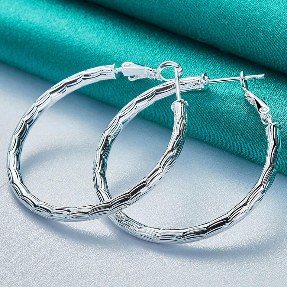 Серьги-петли из стерлингового серебра 925 пробы с водным узором, круглые 40 мм, для женщин, очаровательные ювелирные изделия — купить товар онлайн с бесплатной доставкой по всему миру!