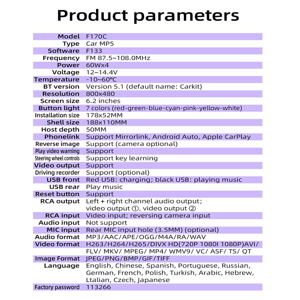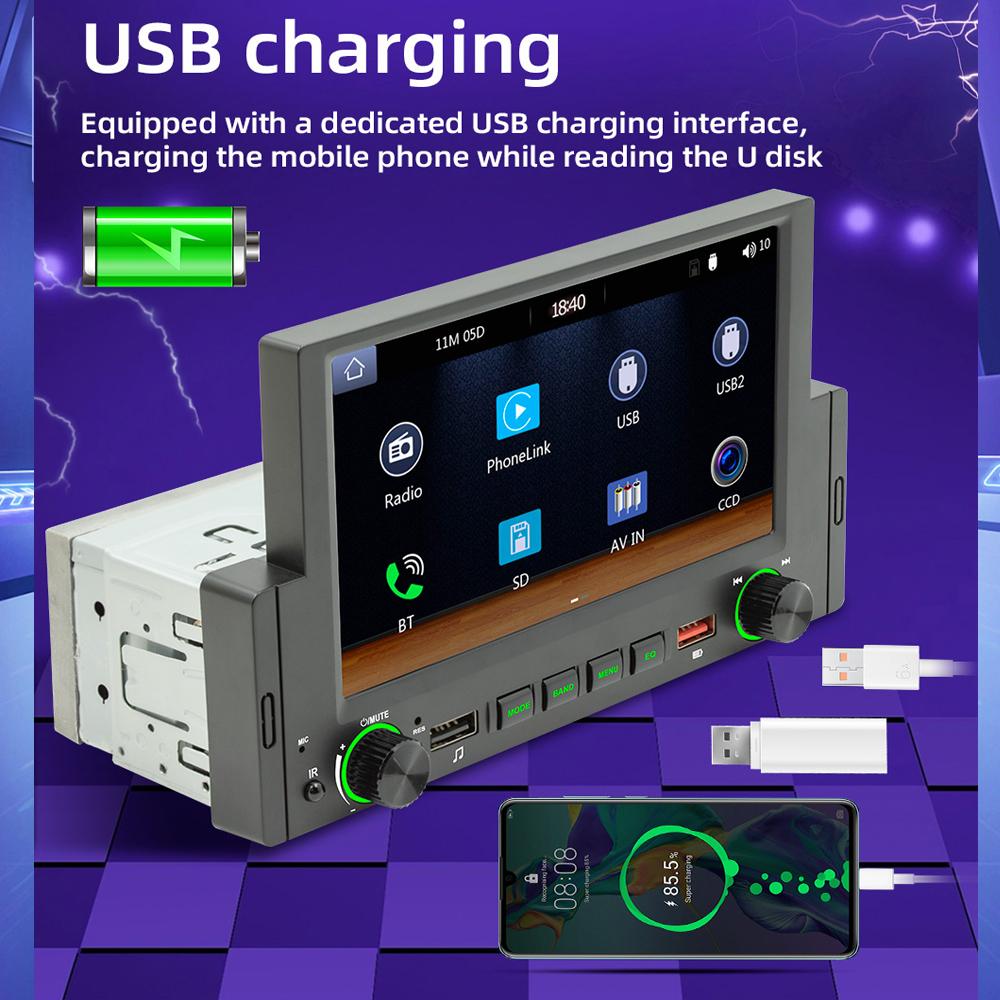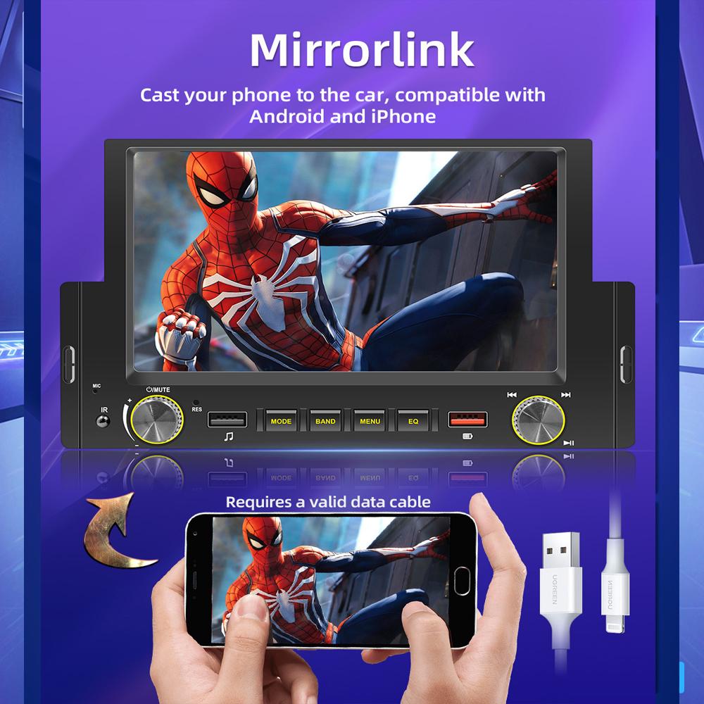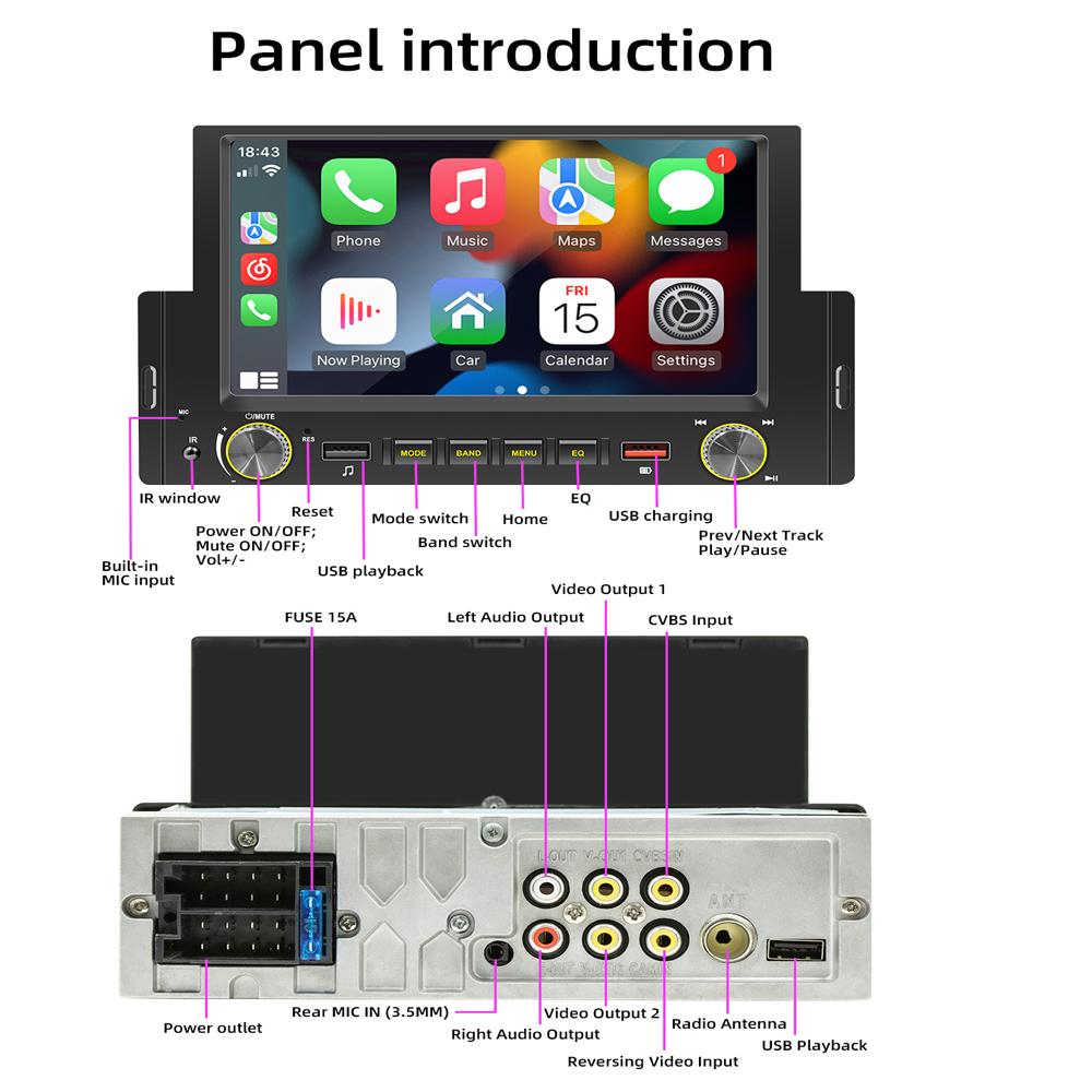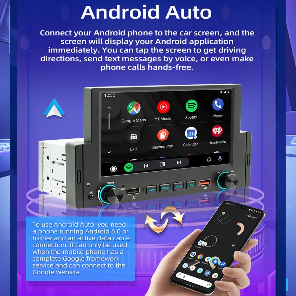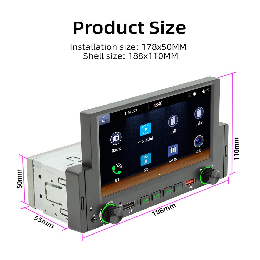 1 Din 6,2-дюймовый автомобильный радиоприемник CarPlay Bluetooth Android-Auto MP5-плеер Hand Free USB FM-приемник Стерео аудиосистема Головное устройство F170C