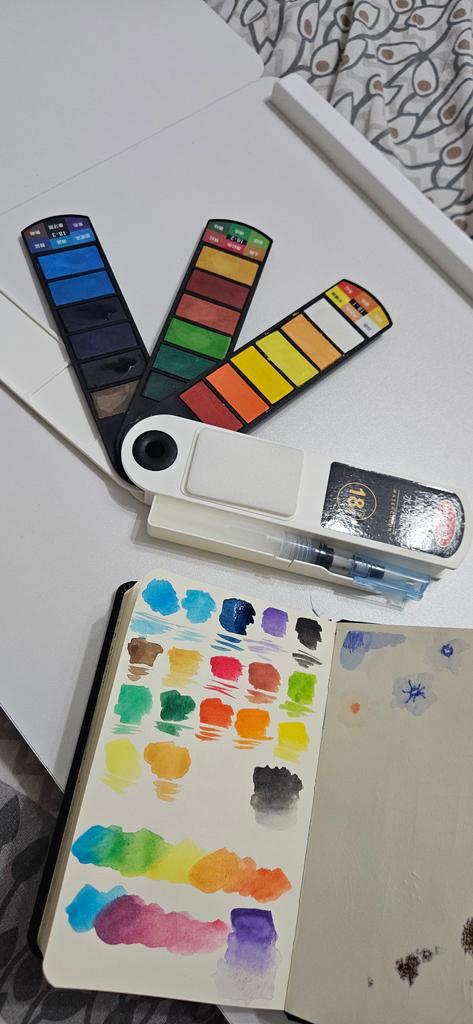 Отличная упаковка, кисть с водным резервуаром, краски тремя выдвигающимися ярусами, небольшая палитра... и все это так компактно и аккуратно собрано! Респект. Самих красок, конечно, немного. Но если окажутся некачественными - отпишусь и сниму звезду :-) ))))