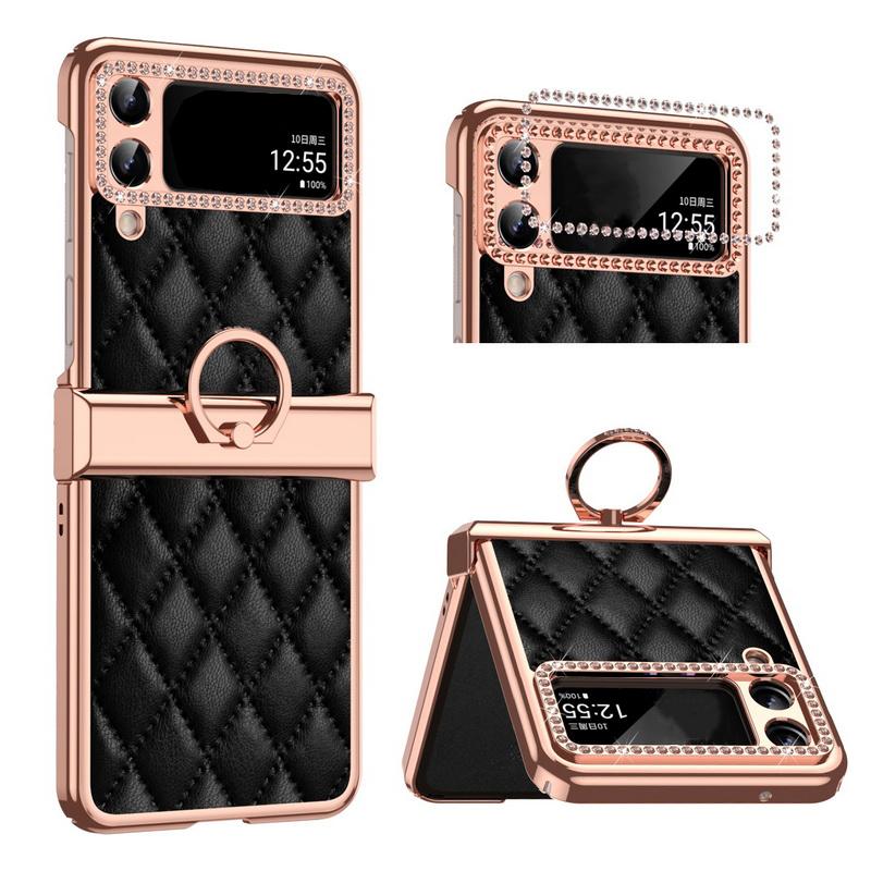 Чехол для Samsung Galaxy Z Flip 4 с кольцом на палец, складной экран, защитный жесткий кожаный чехол из ПК, защитные чехлы для Galaxy Z Flip 3