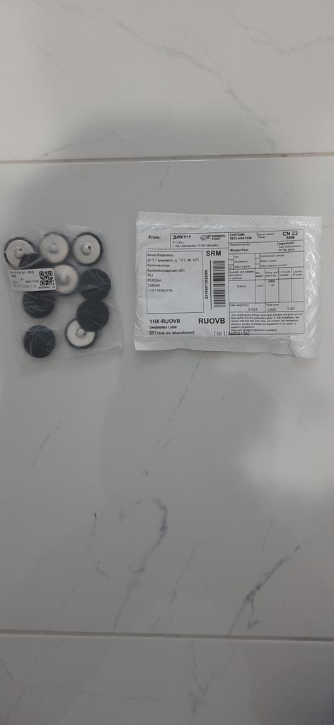 Пуговки ооочень маленькие,98 штук и одна сломана. По России посылка не отслеживалась, доставка 2 месяца из них месяц гуляла по России