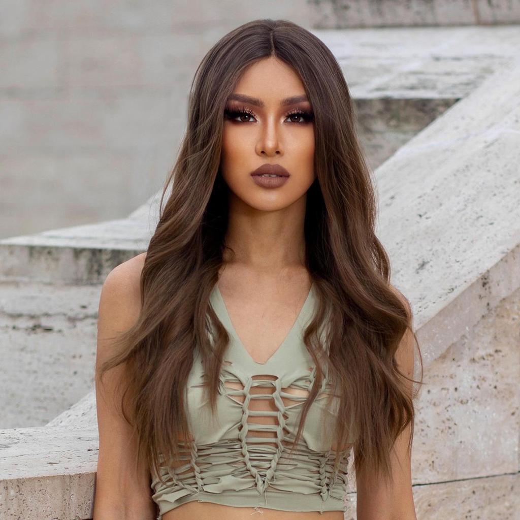 Женские длинные вьющиеся волосы 62 см, Т-образный передний кружевной сеточный головной убор из розовых волос, полный головной убор, парик Карни Канекалон ручной работы