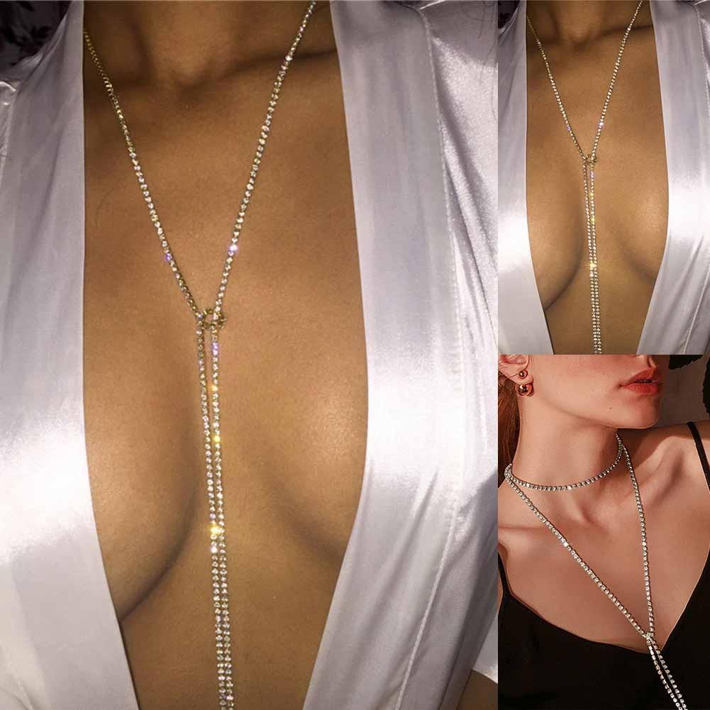 Ожерелье-цепочка со стразами Блестящие женские 150см — купить товар онлайн с бесплатной доставкой до всему миру!