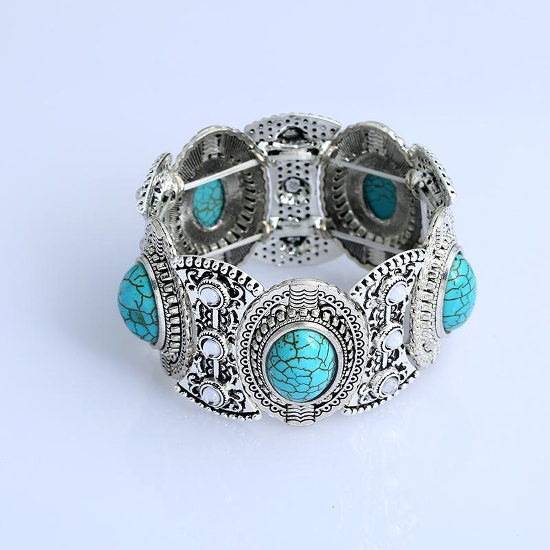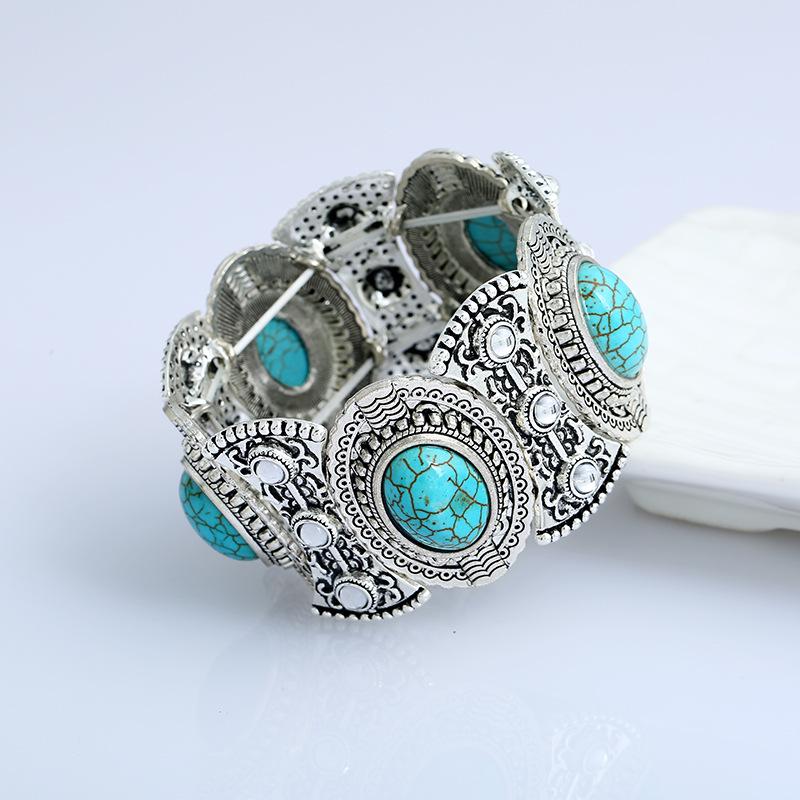 Винтажный старинный серебряный широкий эластичный браслет с овальным камнем для женщин и мужчин, браслеты-манжеты в стиле ретро