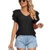 Женские летние топы с люверсами, V-образным вырезом, двойными оборками на рукавах, повседневные блузки, рубашки, свободные топы