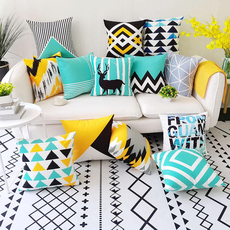 Симпатичная наволочка с изображением лося, скандинавская красочная полосатая подушка с геометрическим рисунком для дивана, офиса, гостиной, украшение для дома, наволочка