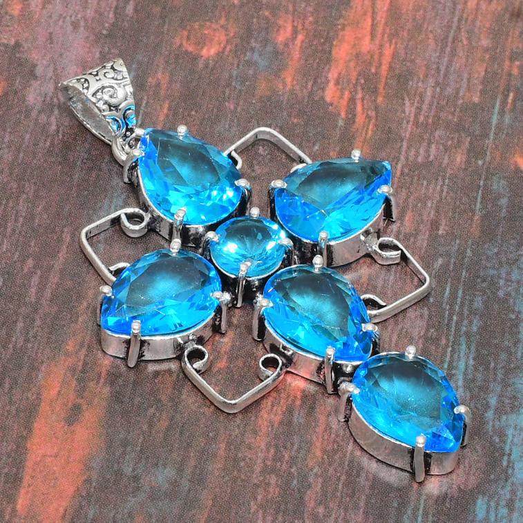 Подвеска ювелирных изделий стерлингового серебра 925 креста швейцарского голубого топаза ручной работы для рождественского подарка