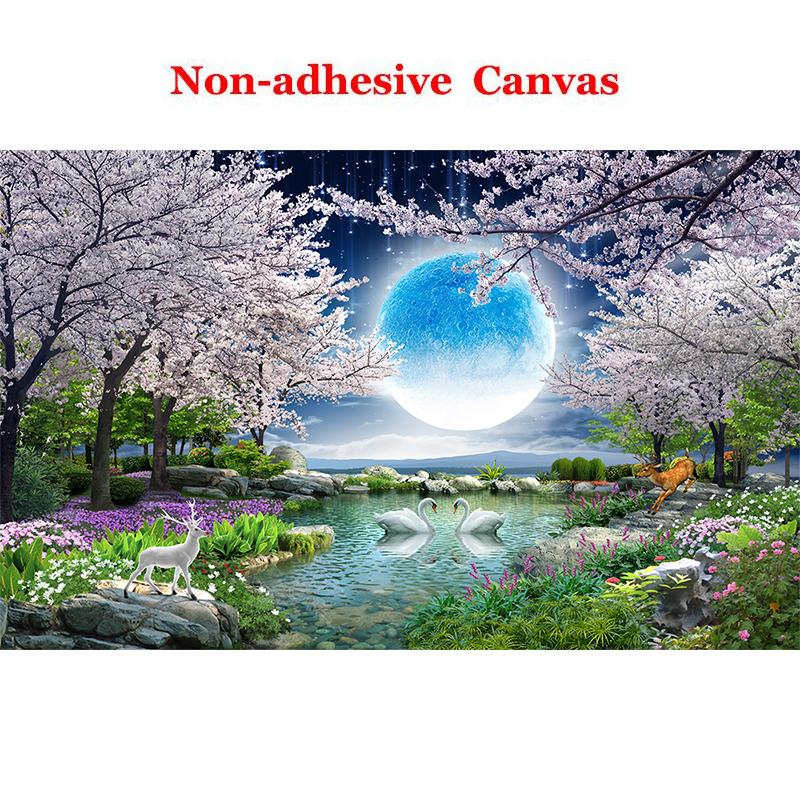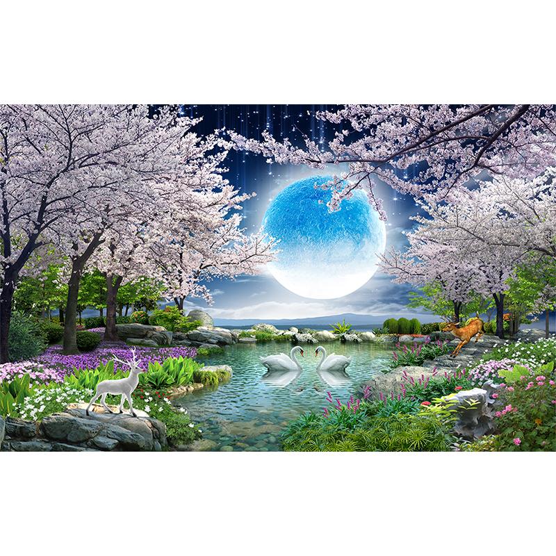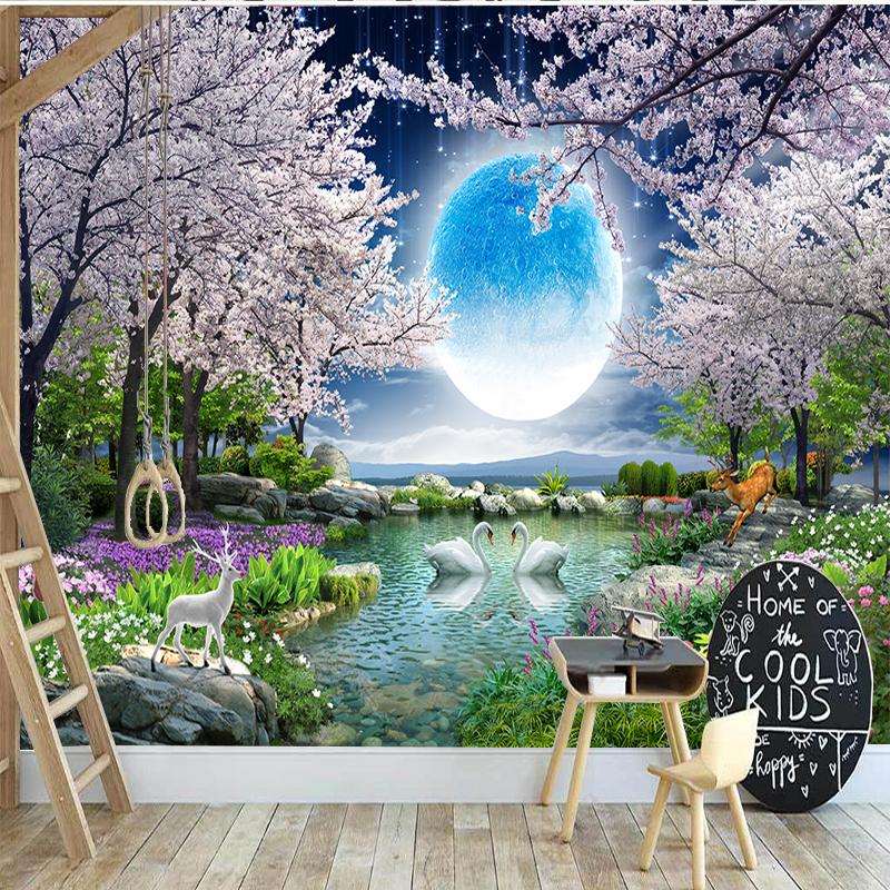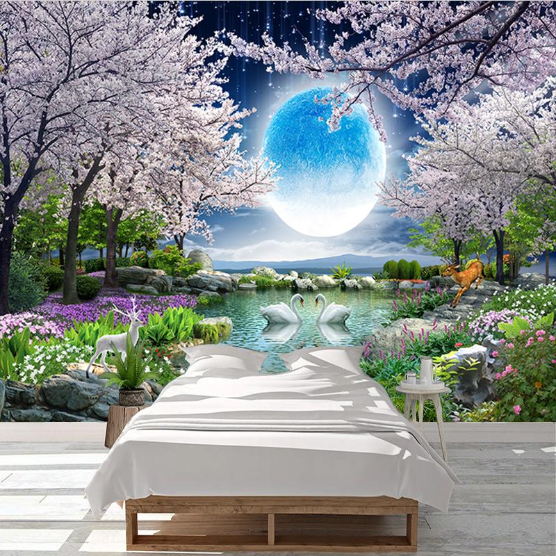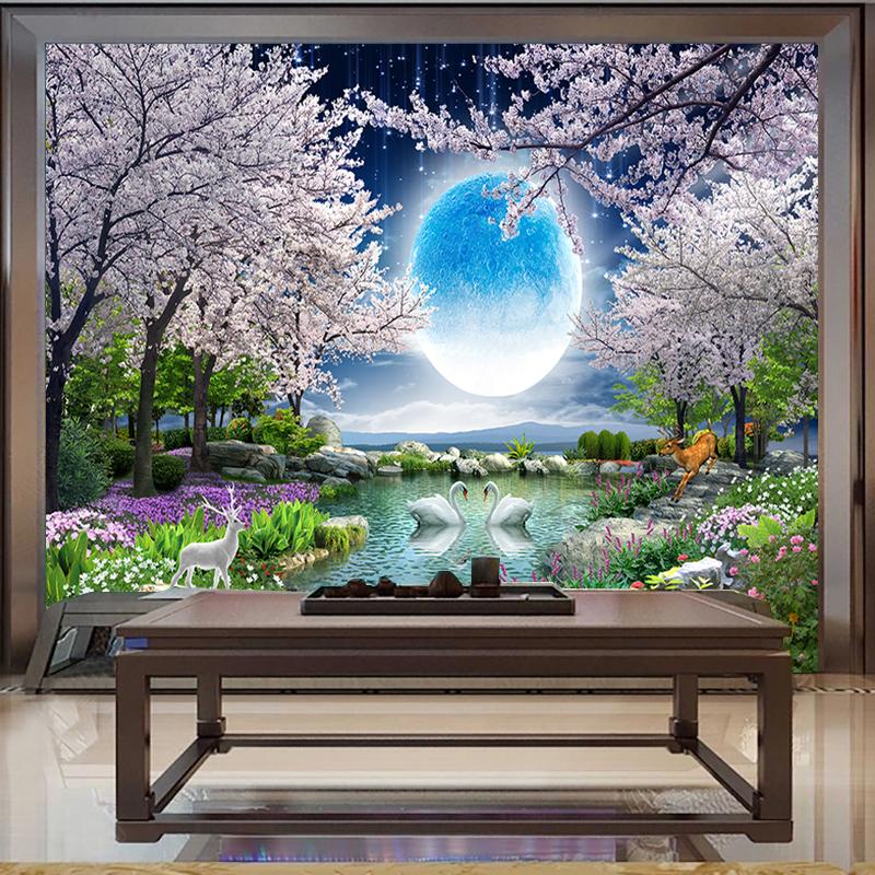 Настенная бумага Луна вишни в цвету дерева Природа Пейзаж Настенная живопись Гостиная Спальня Фото обои Домашний декор Фреска Плакат