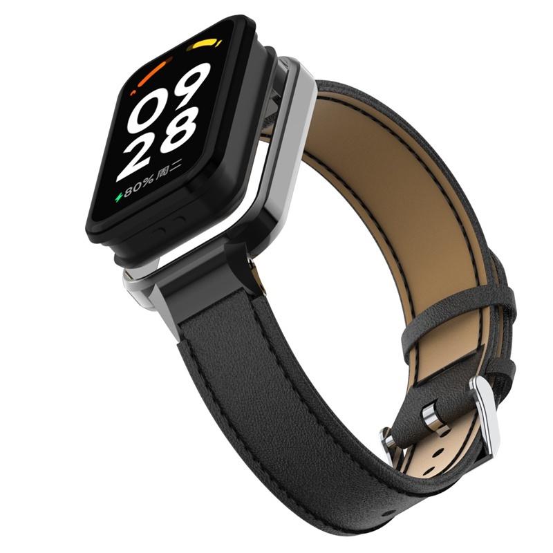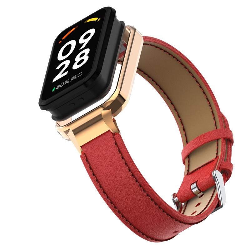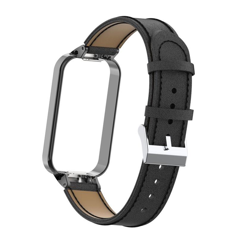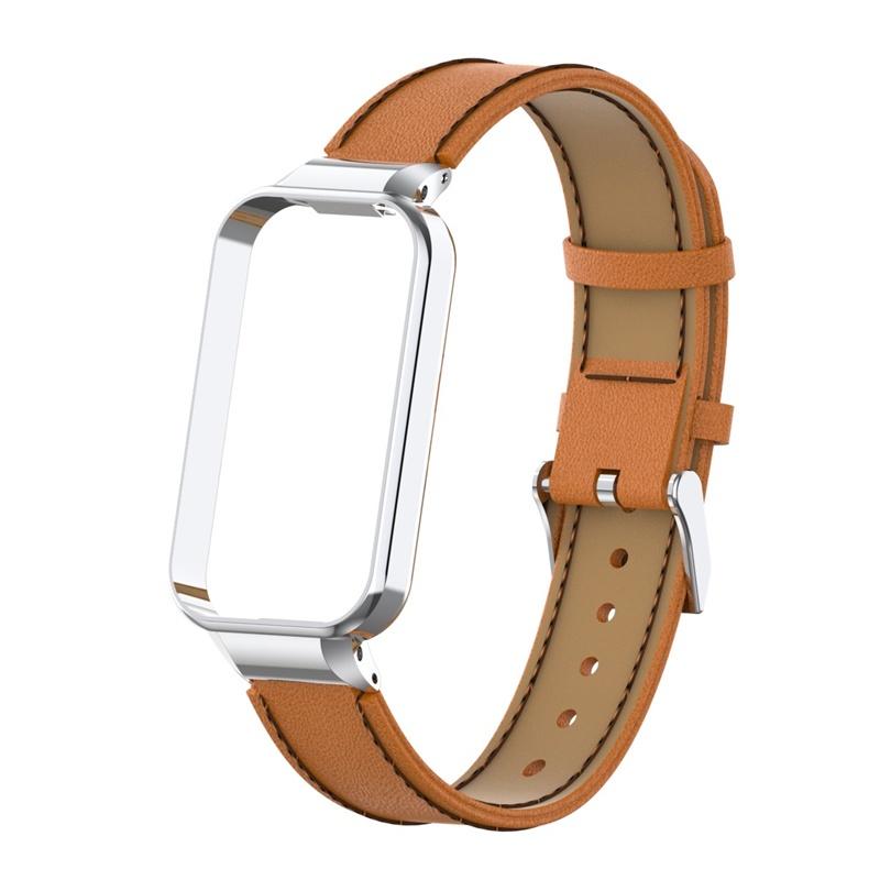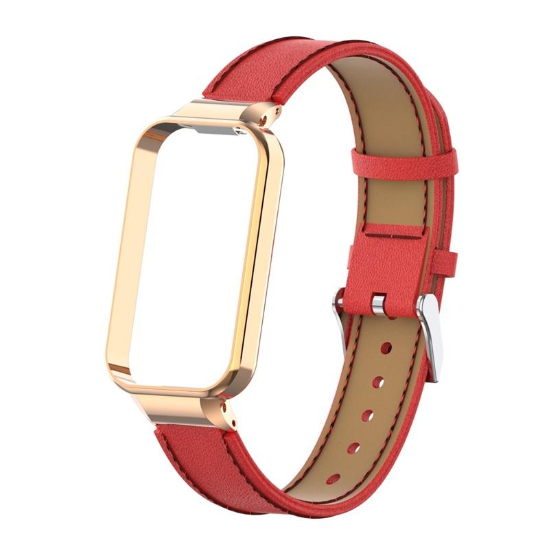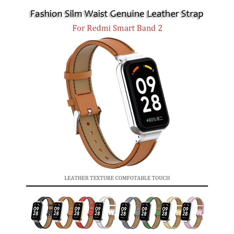Металлический корпус 2-в-1 + кожаный ремешок, тонкий ремешок из натуральной кожи на талии для Redmi Smart Band 2, сменный браслет, модный мужской и женский ремешок для часов