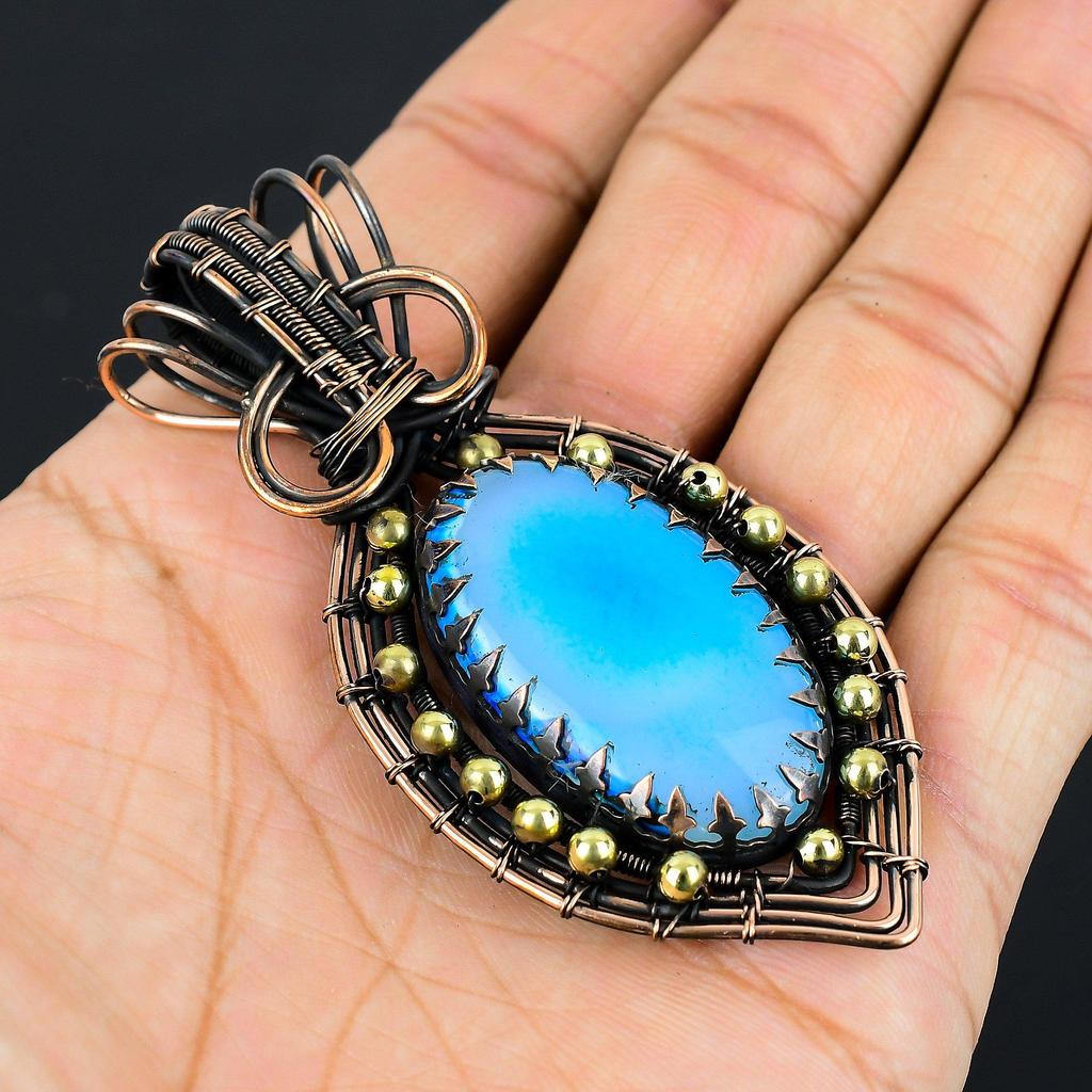 Удивительный Owyhee Opal Gemstone Pure Copper Wire Wrapped Handmade Pendant Jewelry
