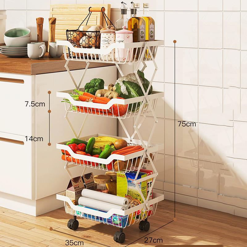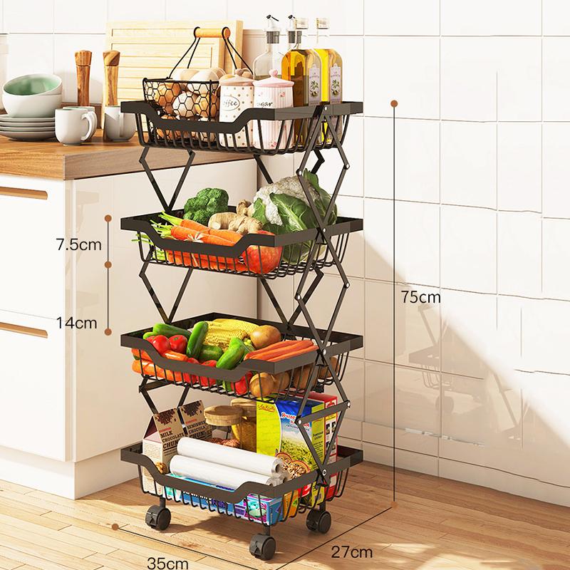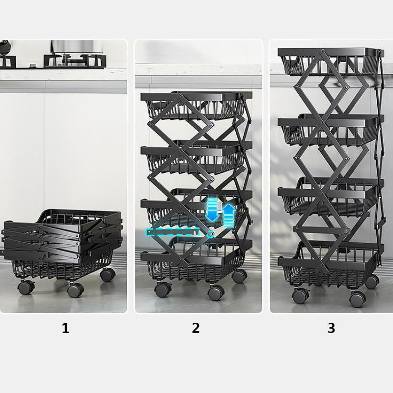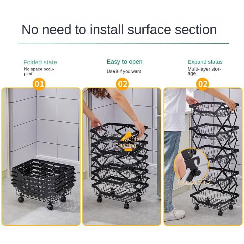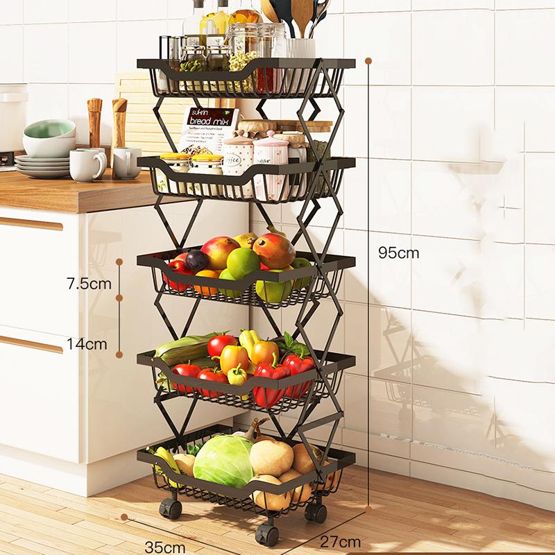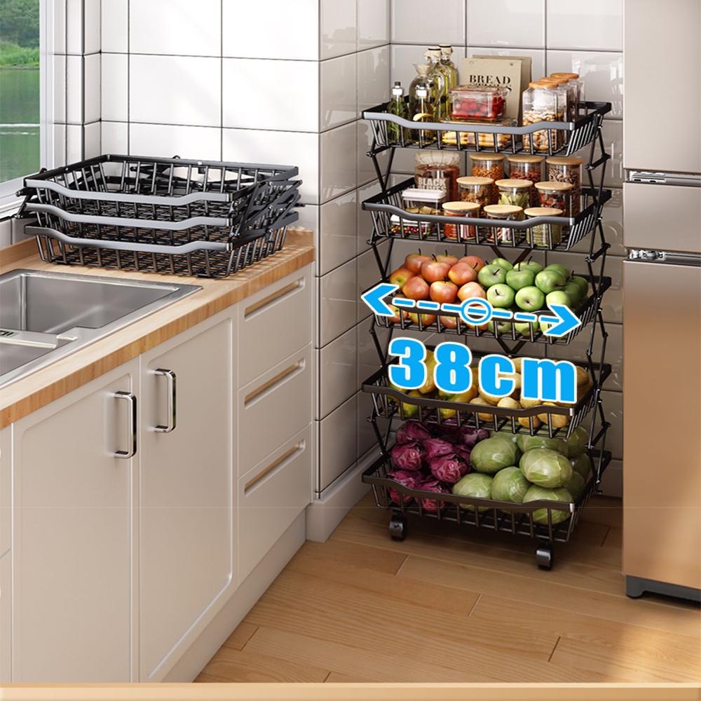 БОЛЬШАЯ ЕМКОСТЬ - Электроприборы, банки с приправами, туалетные принадлежности могут быть размещены на верхнем слое. Пять полых корзин внизу могут хранить фрукты, овощи и посуду и т. Д.