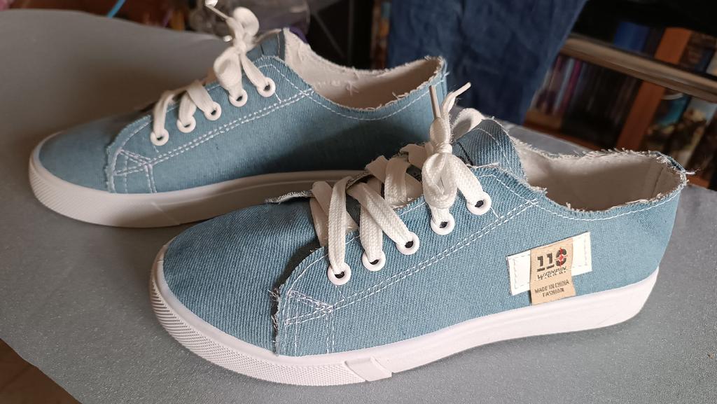 Кеды соответствуют фото, но видно, что вещь дешевая. Начитавшись отзывов, заказала размер 38 на свой 37-й. Подошли хорошо. Упаковка была мягкая (зип-пакет), поэтому немного помяты спереди. Надеюсь, что расправятся при носке. На дырочках для шнуровки в одном месте есть очевидный брак с внутренней стороны: заклепка сделана неаккуратно, с зазубринами, поэтому шнурок трудно протянуть через эту дырку. В целом, за такую цену (со скидкой) - нормально, но второй раз не куплю. Доставку задержали, но это объяснимо, много заказов из-за скидок.