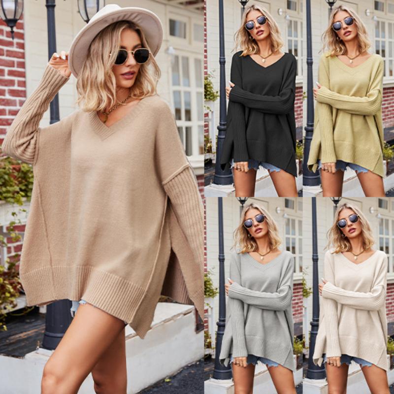 Осень/зима 2023, женский повседневный свитер с v-образным вырезом, большой размер, модный трикотаж, сексуальный пуловер, свитер — купить товар онлайн с бесплатной доставкой по всему миру!