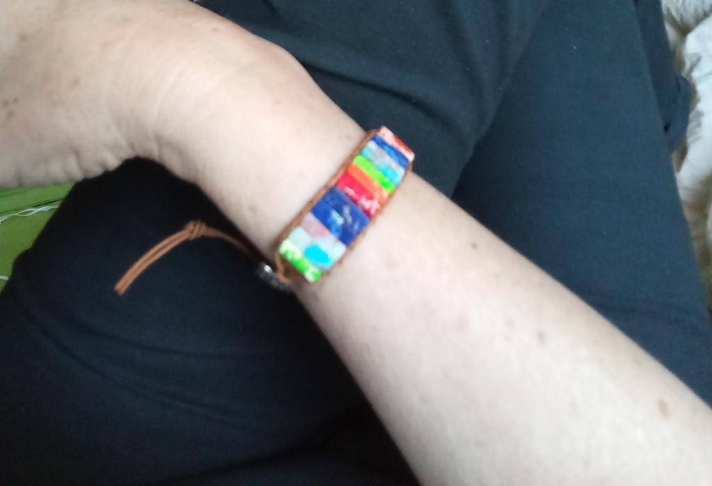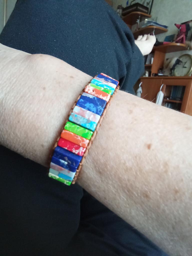 Первая реакция, вынув из пакета- была "не очень", и мелковат, и не оч .похож". А на руке, оказался очень хорош. натуральные камни, быстро включились в работу, влюбили в себя, снимать не хочется. Очень нравится. Браслет позитивный, радостный. Петля на застёжке в 2положениях, можно плотно, или чтобы болтался. Есть выбор.