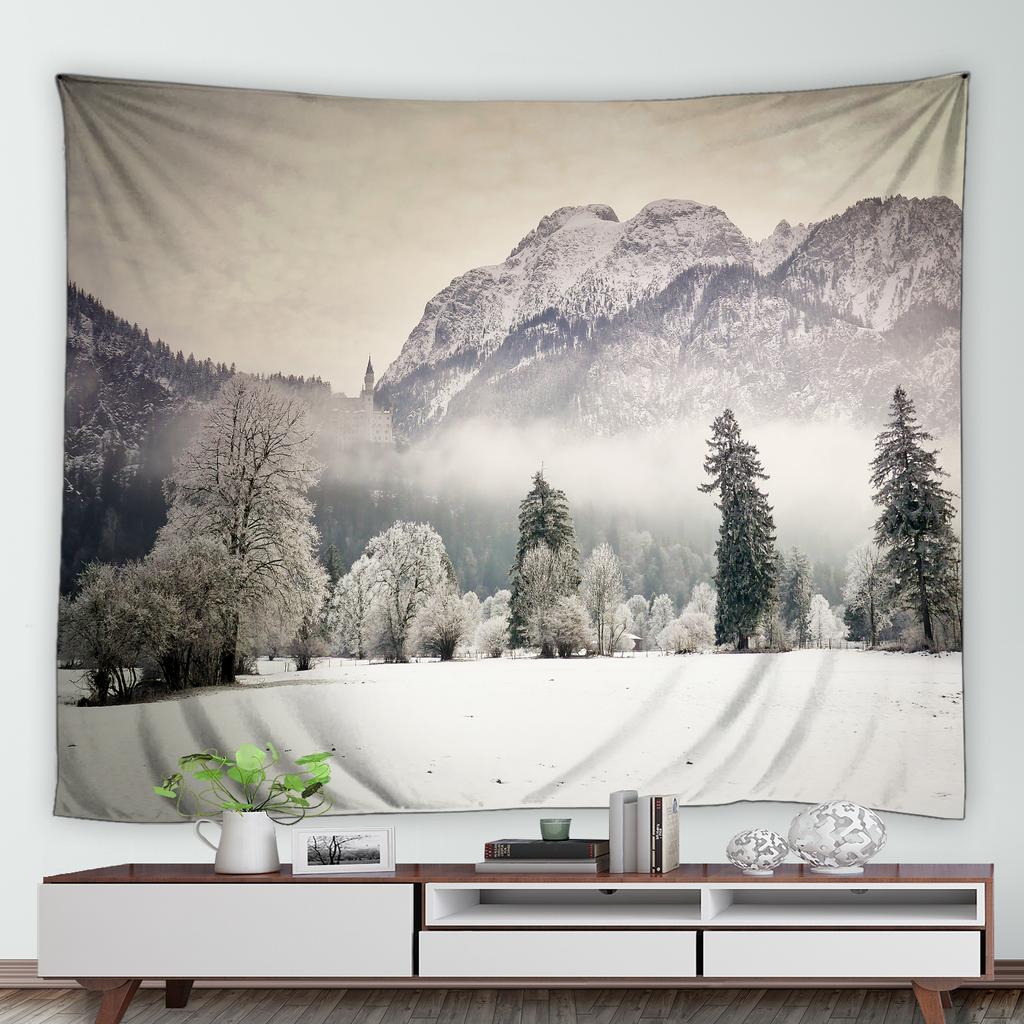 Зимний лес, снежный принт, гобелен с узором, домашняя спальня, гостиная, декор стен общежития, тканевый гобелен