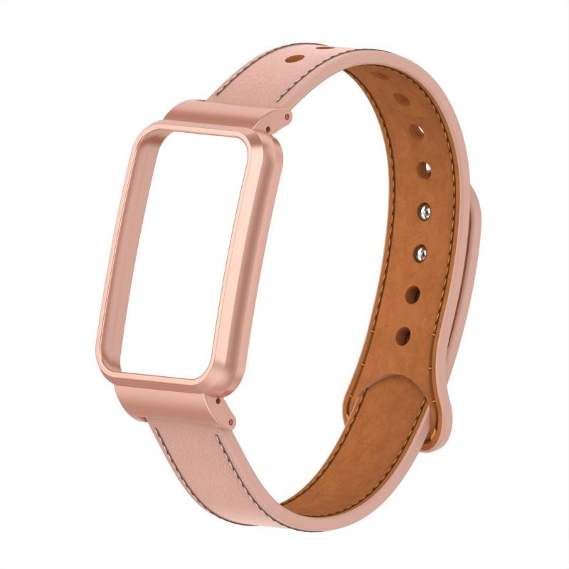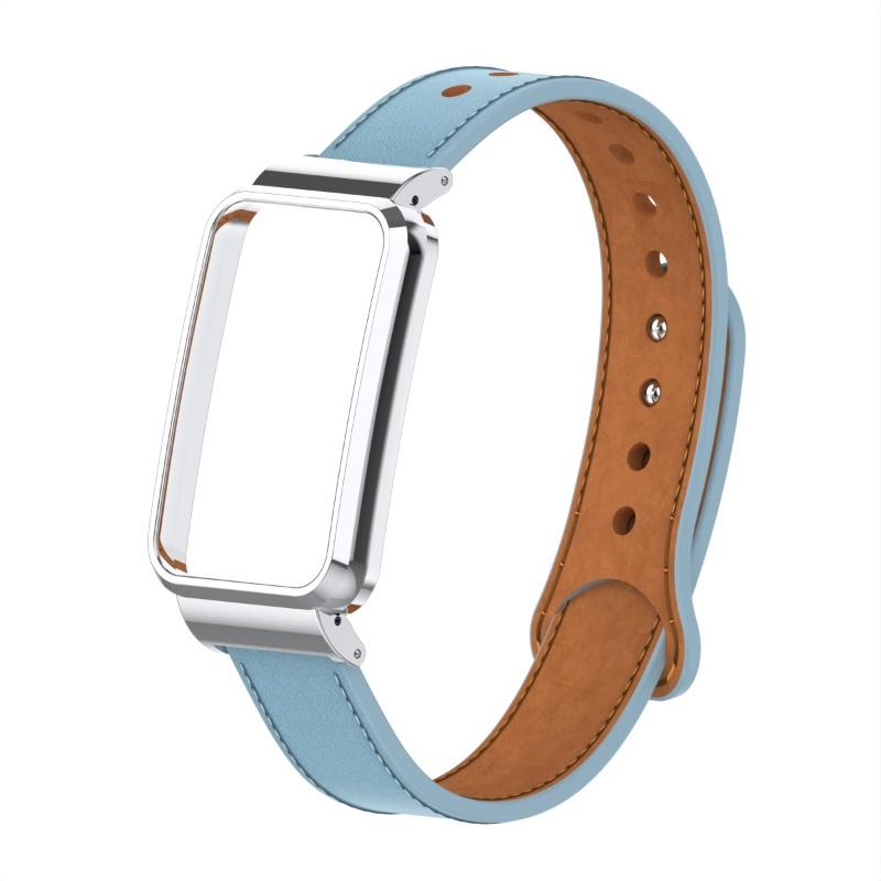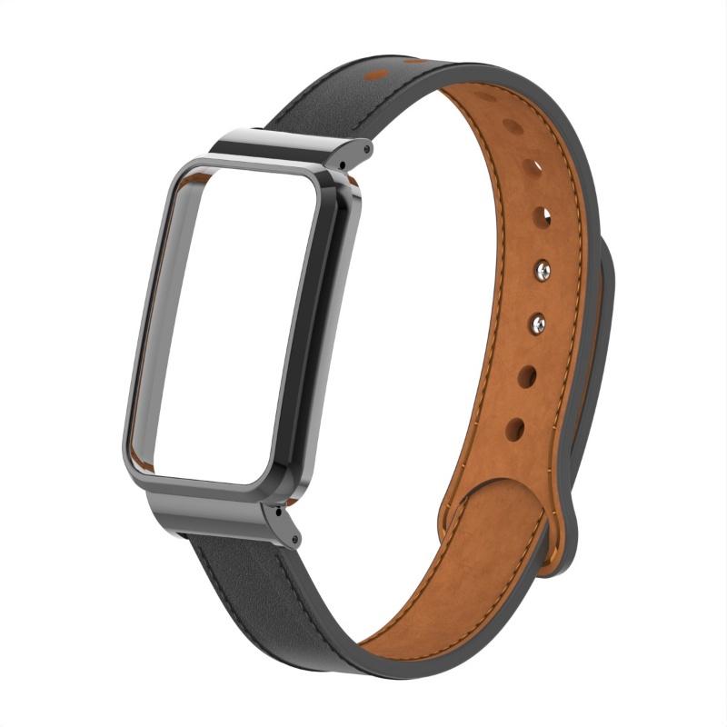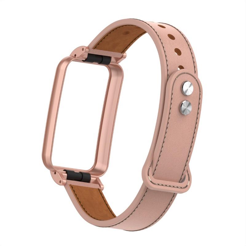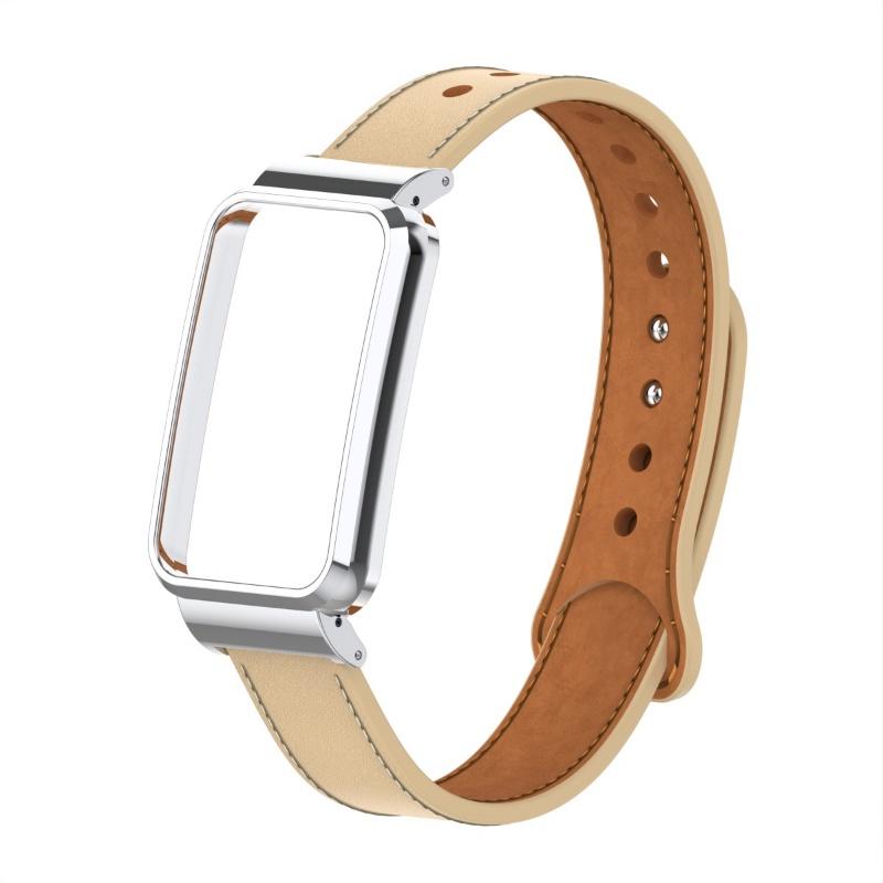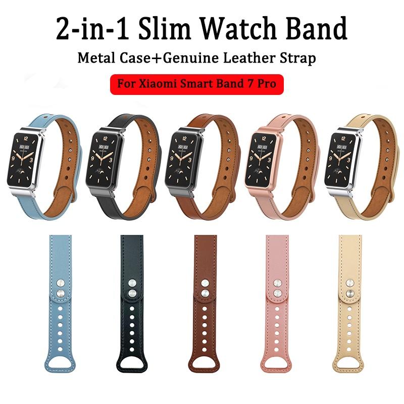 Металлический корпус + кожаный ремешок 2-в-1 двойной гвоздь на небольшую талию, ремешок из натуральной кожи для Xiaomi Smart Band 7 Pro, модный сменный ремешок для часов для леди и джентльмена