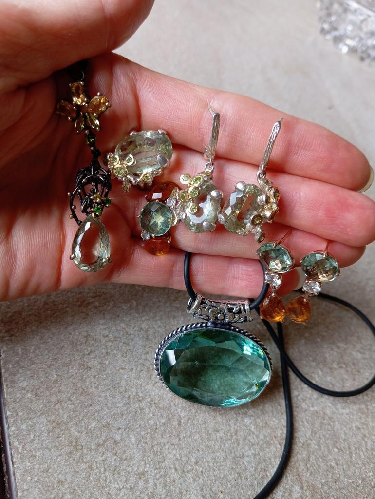 Супер!!! Цвет обалденный!!! Даже не ожидала. Проба металла есть. Производителю - снимаю шляпу! Огромное спасибо за такую красоту!!! Очень качественно сделано! Кстати, хочу дополнить отзыв о цвете зелёного аметиста для тех, кто не знает: зелёный аметист или празиолит может быть еле уловимого зелёного цвета, почти прозрачного белого, до густого тёмно-зелёного цвета. Это ответ какому то отзыву, типа почувствуйте разницу. Приложила фото своих зелёных аметистов. И кулон прекрасно будет сочетаться, несмотря на разницу в цвете!