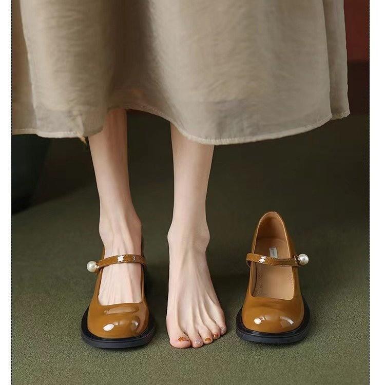 Женские кожаные туфли в стиле ретро с круглым носком и жемчужными высокими каблуками на мелком каблуке — купить товар онлайн с бесплатной доставкой по всему миру!