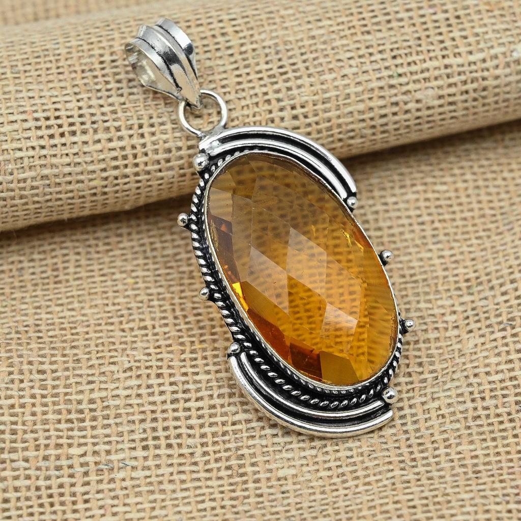 Ограненный медовый топаз, кулон из стерлингового серебра 925 пробы, ювелирный подарок ручной работы для нее