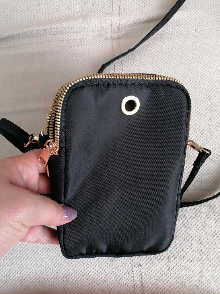 Получила сумку. Хорошо упакована, отличного качества. Ткань даже лучше, чем я ожидала. Предполагала, что будет простая хб ткань, оказалось плотная ткань типа плащевки. Непромокаемая. Ремешок длинный, как и хотели. Три отдельных отделения, телефон прекрасно вмещается. Есть отверстие для провода наушников. Брала внучке на прогулки, чтобы было куда складывать ключи, деньги, телефон. Покупкой довольны, рекомендую товар и продавца.