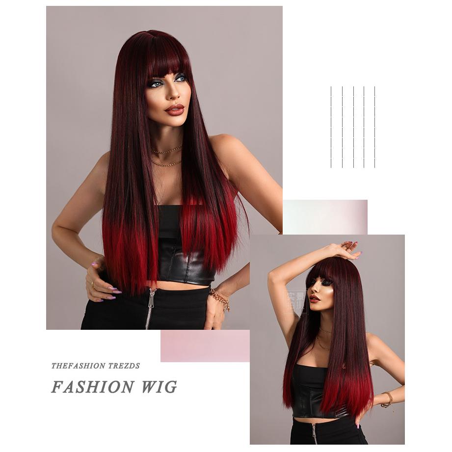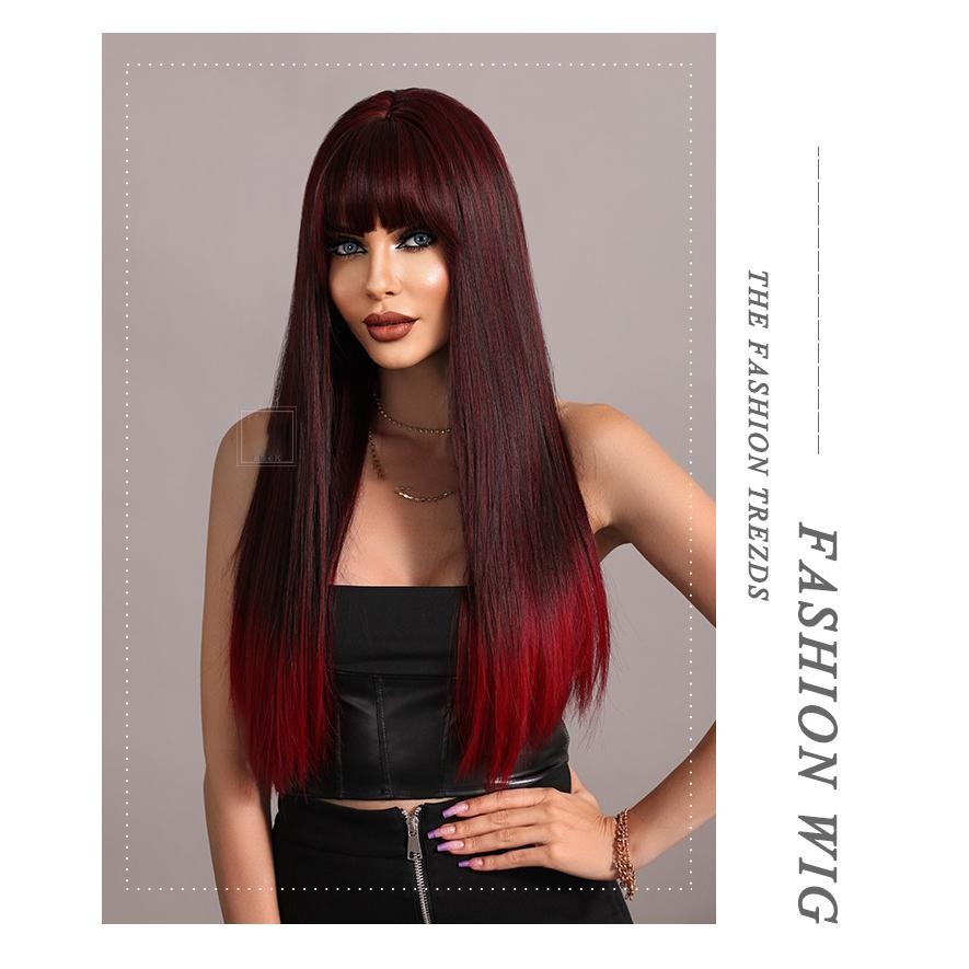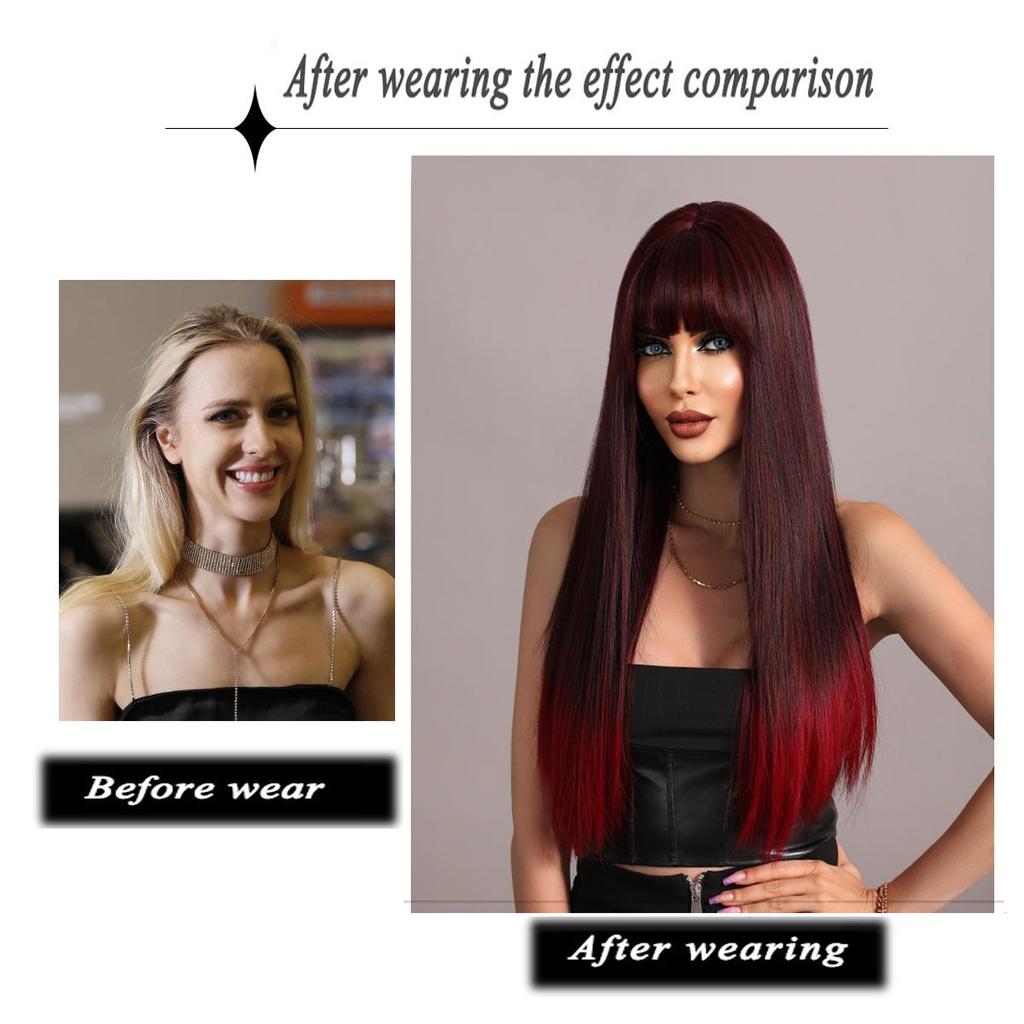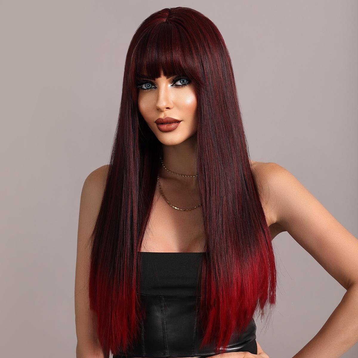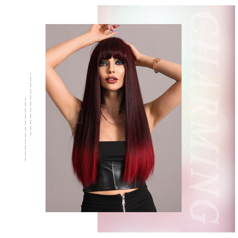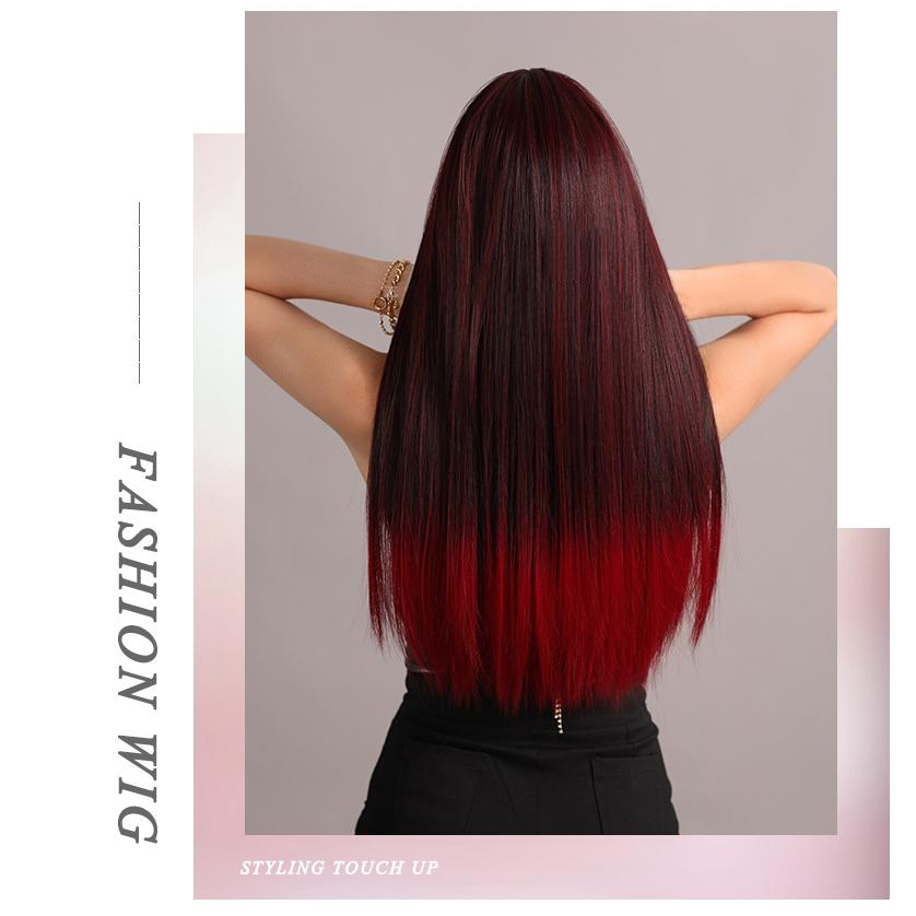 Женские волосы 62 см Искусственные волосы Красный Черный Парик Длинные волосы Длинные прямые волосы Розовые волосы Сетчатый головной убор Полный головной убор Натуральный настоящий парик