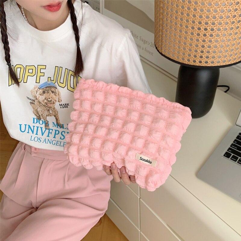 Мягкие цветные косметички большой вместимости из пузырьковой пряжи, дорожные туалетные принадлежности для ухода за кожей, косметичка-органайзер, клатч, косметичка на каждый день