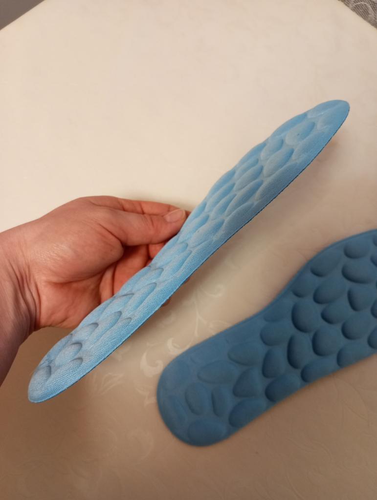 СТЕЛЬКИ 👣. 💙 Стельки упакованы в пакет. У продавца представлены в едином цвете. 💙 На свою стопу 25 см заказала размер 41-42. Стельки прекрасно подошли, даже с запасом. По факту длина стельки оказалась 25,7 см. 💙 Стельки мягкие, амортизируют. Правда, массажный эффект чувствуется только первые пару дней. При ходьбе стелька не скользит, не ёрзает. Стельки неплохие, можно брать 👍. Желаю всем только удачных покупок 🛍️!💋💋💋