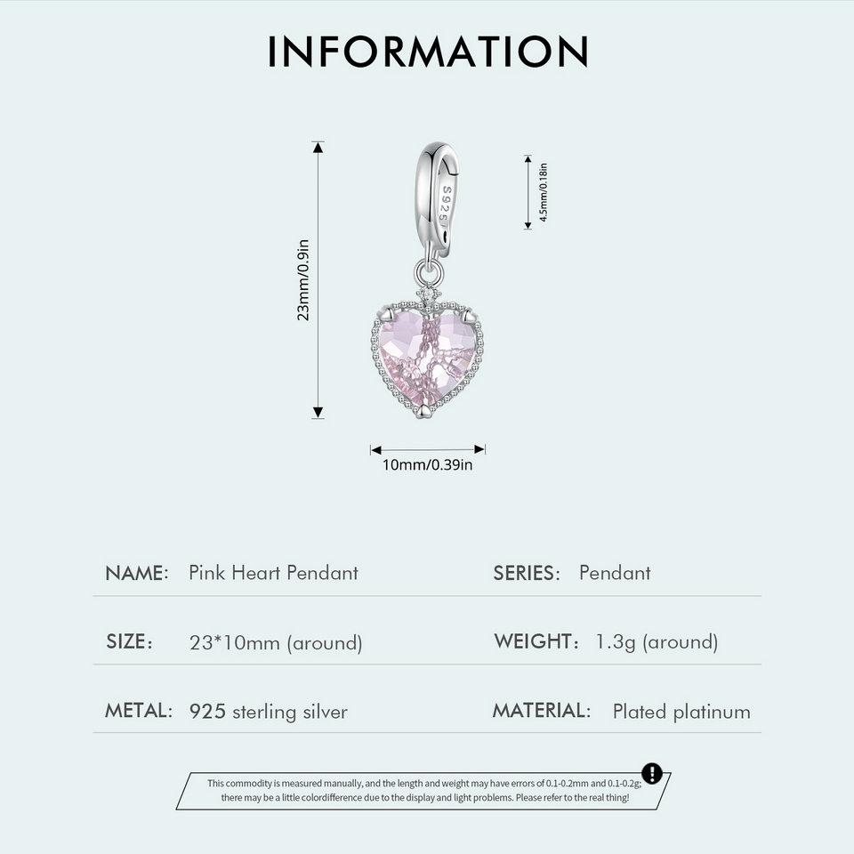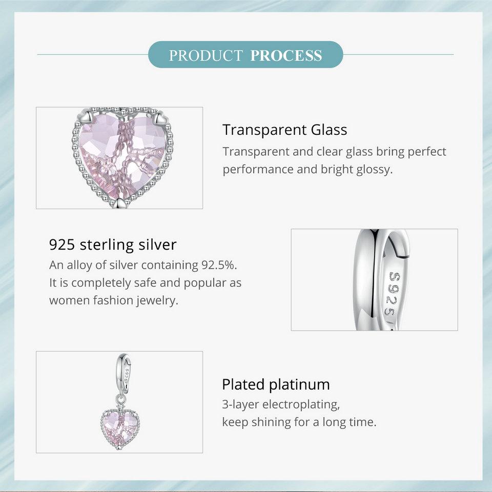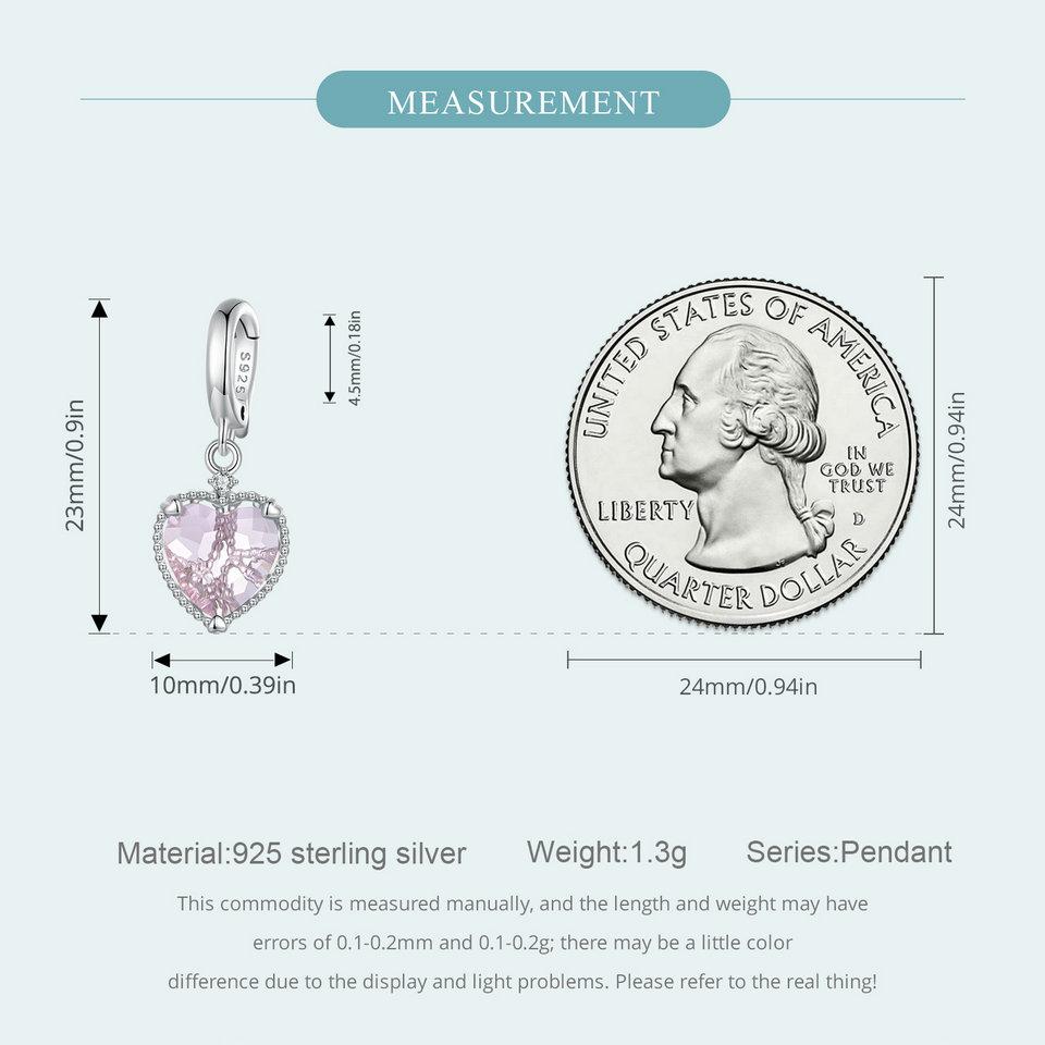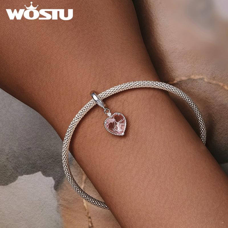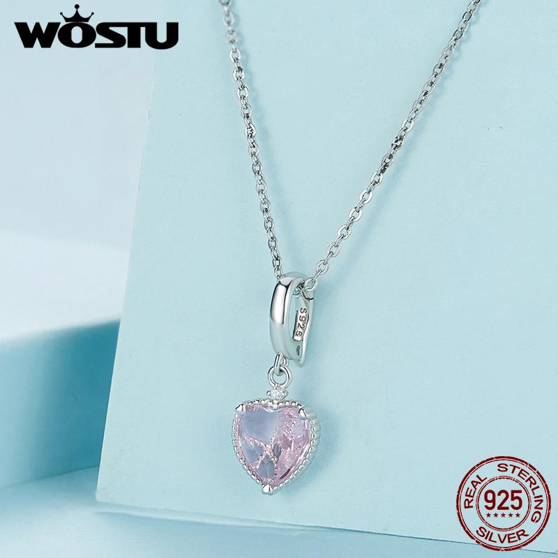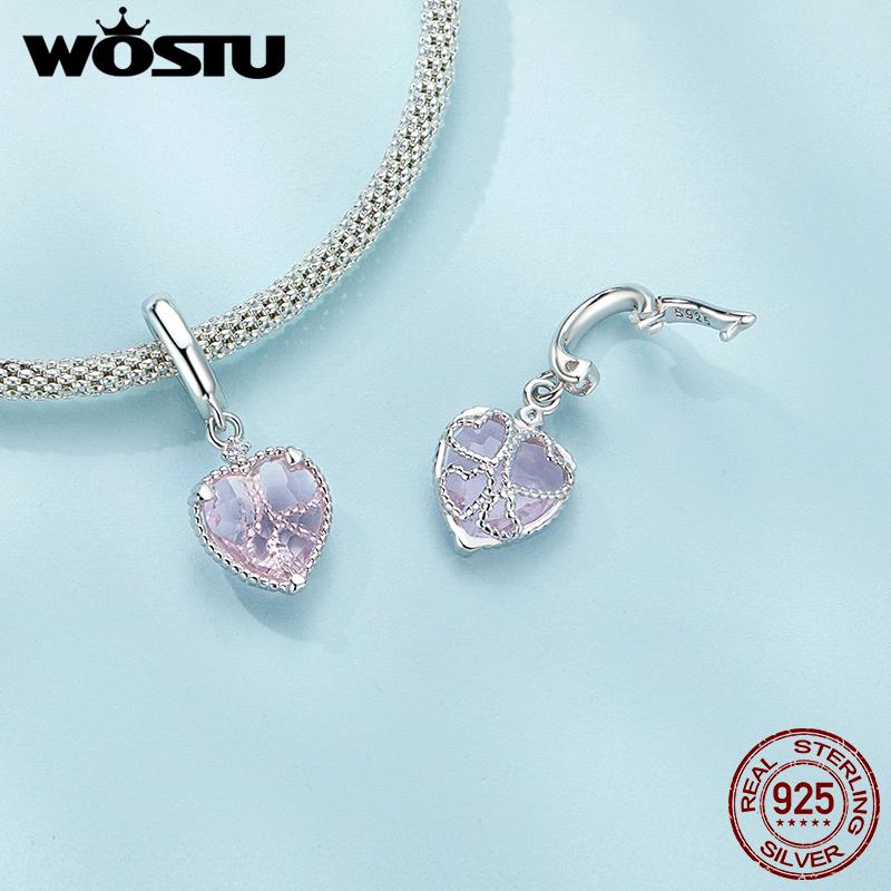 WOSTU Стерлингового Серебра 925 Розовое Сердце Висячие Бусины Полые Подвески Любовь Подвески для Женщин Браслет Ожерелье DIY