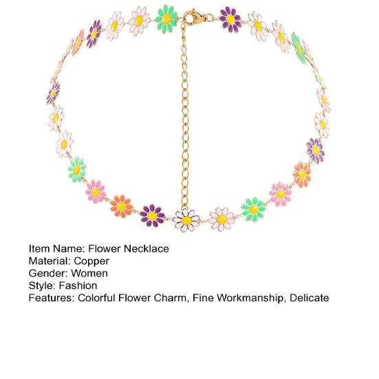 Это ожерелье с маслянистыми цветочными подвесками с ярким цветом и тонкой цепочкой с золотистой отделкой может легко сочетаться с футболками, платьями, повседневными нарядами, свитерами и многим другим, чтобы показать ваш уникальный вкус.
