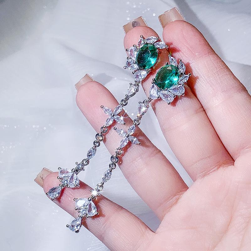 Роскошные женские серьги с блестящим цирконием AAAA, высококачественные женские серьги с зеленым драгоценным камнем, вечерние наушники, подарок на годовщину