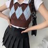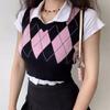 Винтажный контрастный вязаный жилет с ромбами, женский вязаный жилет, свитер без рукавов с v-образным вырезом, вязаный топ