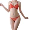 Вышивка Цветок Тонкая чашка Бюстгальтер Стринги Набор Кружева Холтер На шнуровке Прозрачный бюстгальтер